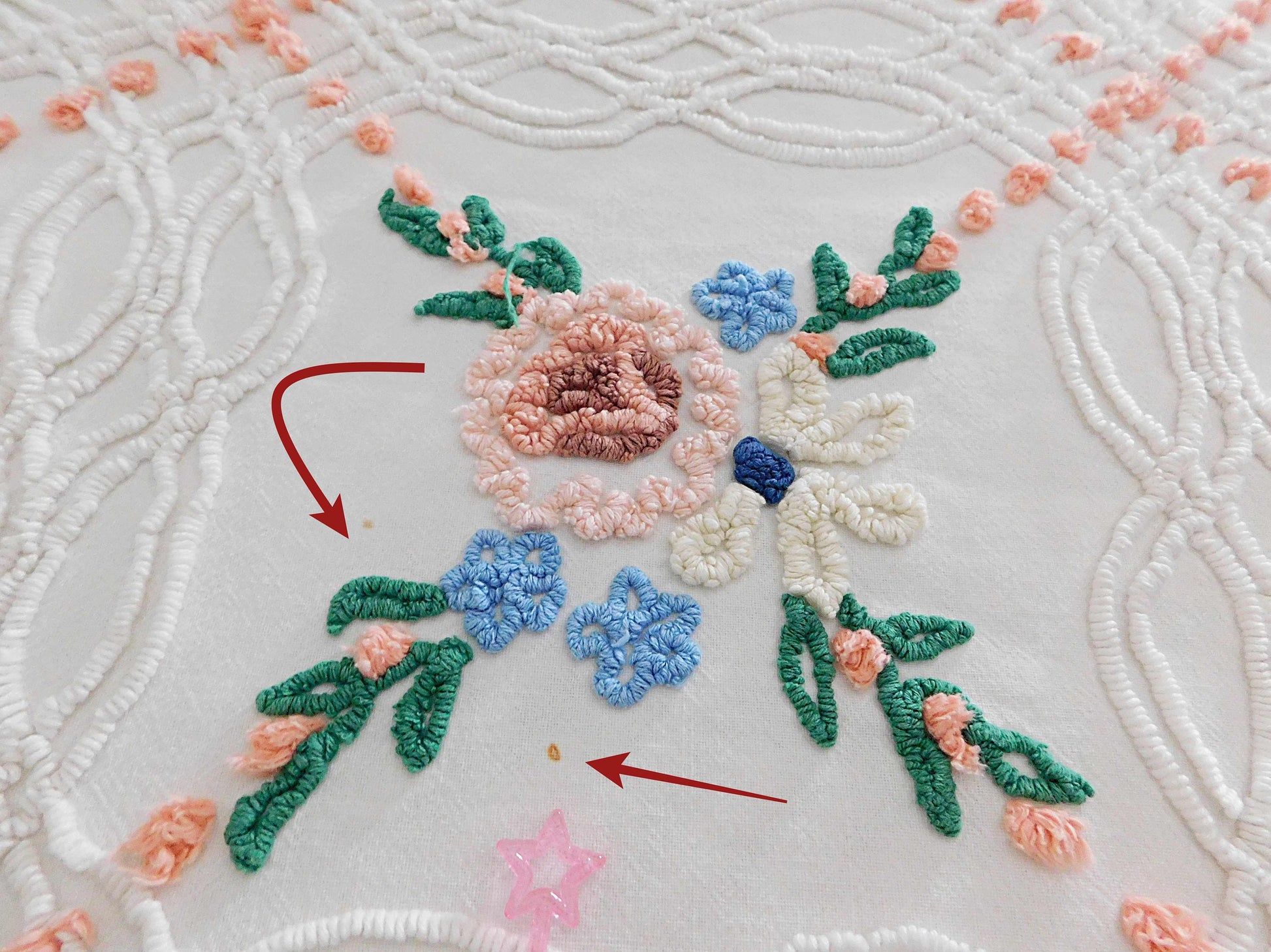 ::all linens are in pre-loved vintage condition showing normal attributes of previous life (i.e.. missing tufts, color variations, vintage scents, age marks, etc.)