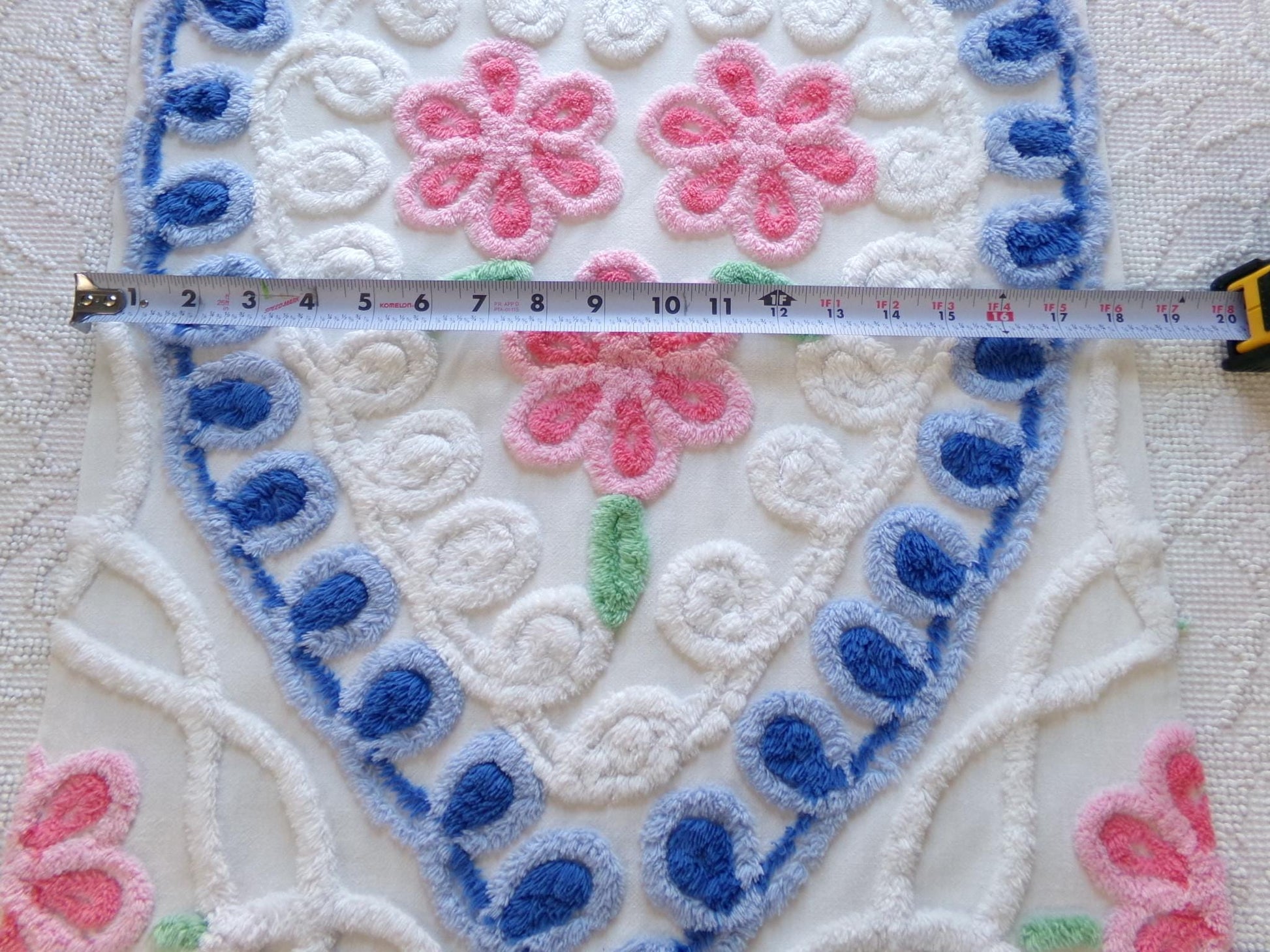 Wouldn't this fabric make the cutest vintage cottage style pillow? You will have fun creating something beautiful with this pretty piece of chenille, in a large scale heart design that wraps around a trio of pink roses. I have several of these pieces available if you need more than one (pattern placement may vary slightly).Measures approx 18" x 22" inches. 100% lightweight cotton with plush chenille tufting. You may spot a few missing tufts or small marks (final img), common to the fabric.