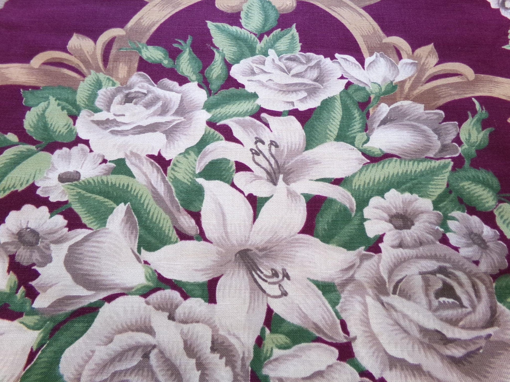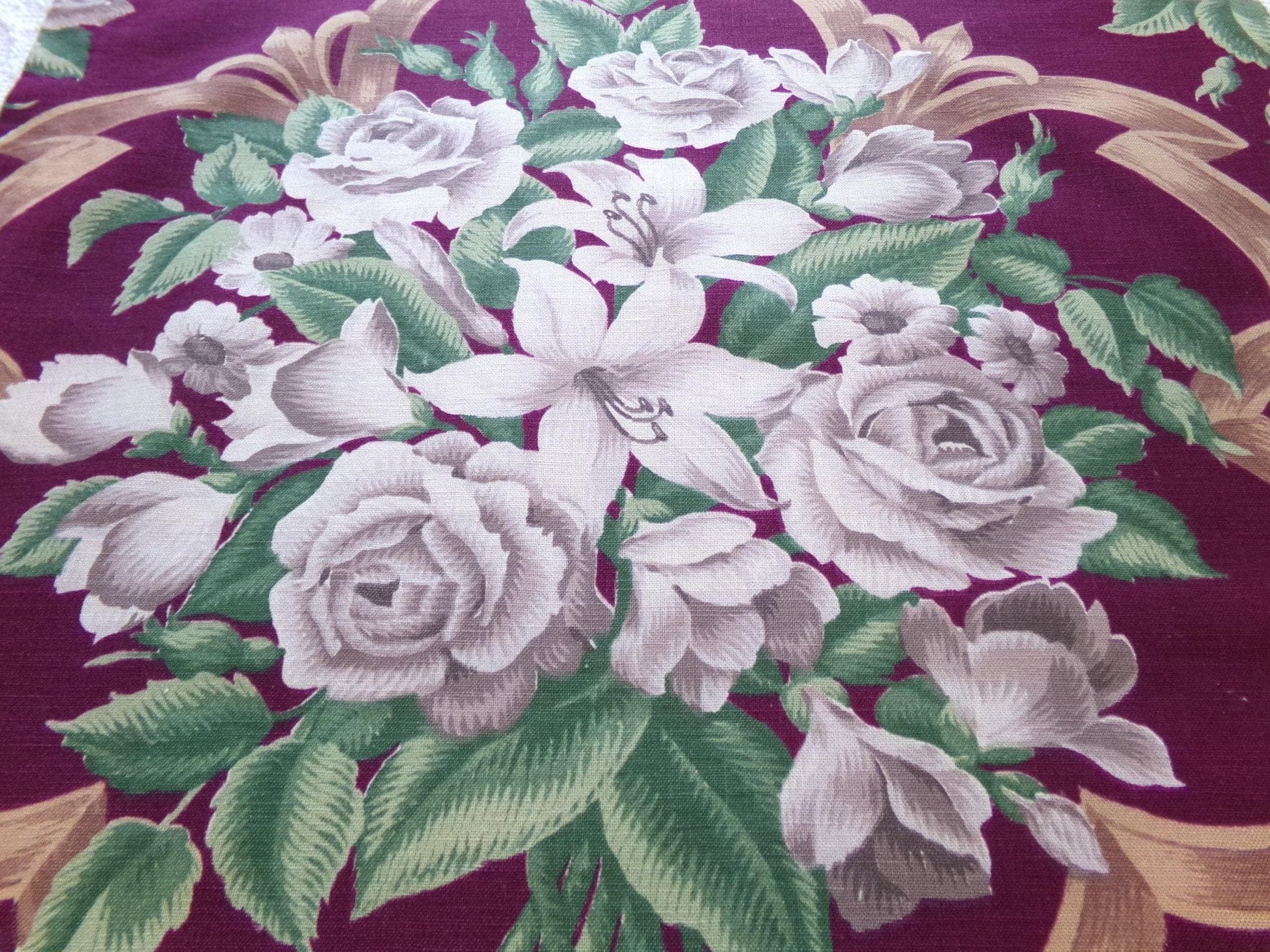 This beautiful vintage fabric represents a blend of shabby chic and timeless elegance. The fabric was sourced from a deconstructed curtain panel; it feels like a canvas cotton (it is NOT BARKCLOTH, just in the style of the fabulous old barkcloth prints).Measures about 21" x 30" inches. An ideal piece for pillows or to upcycle into a wall hanging. Note some marks to fabric, as seen final img.