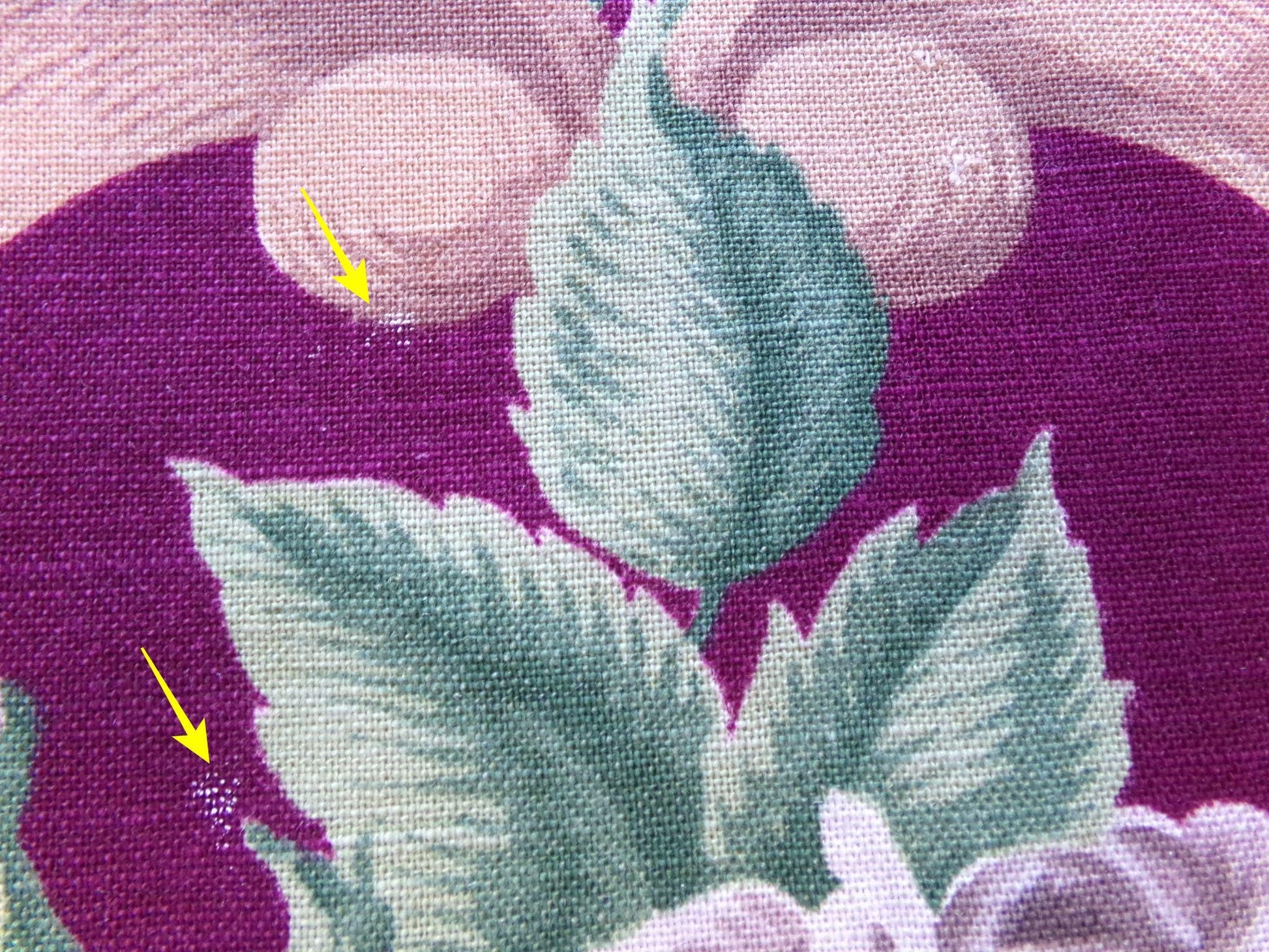 -expect vintage attributes such as age spots, pulled threads, color variances, etc.