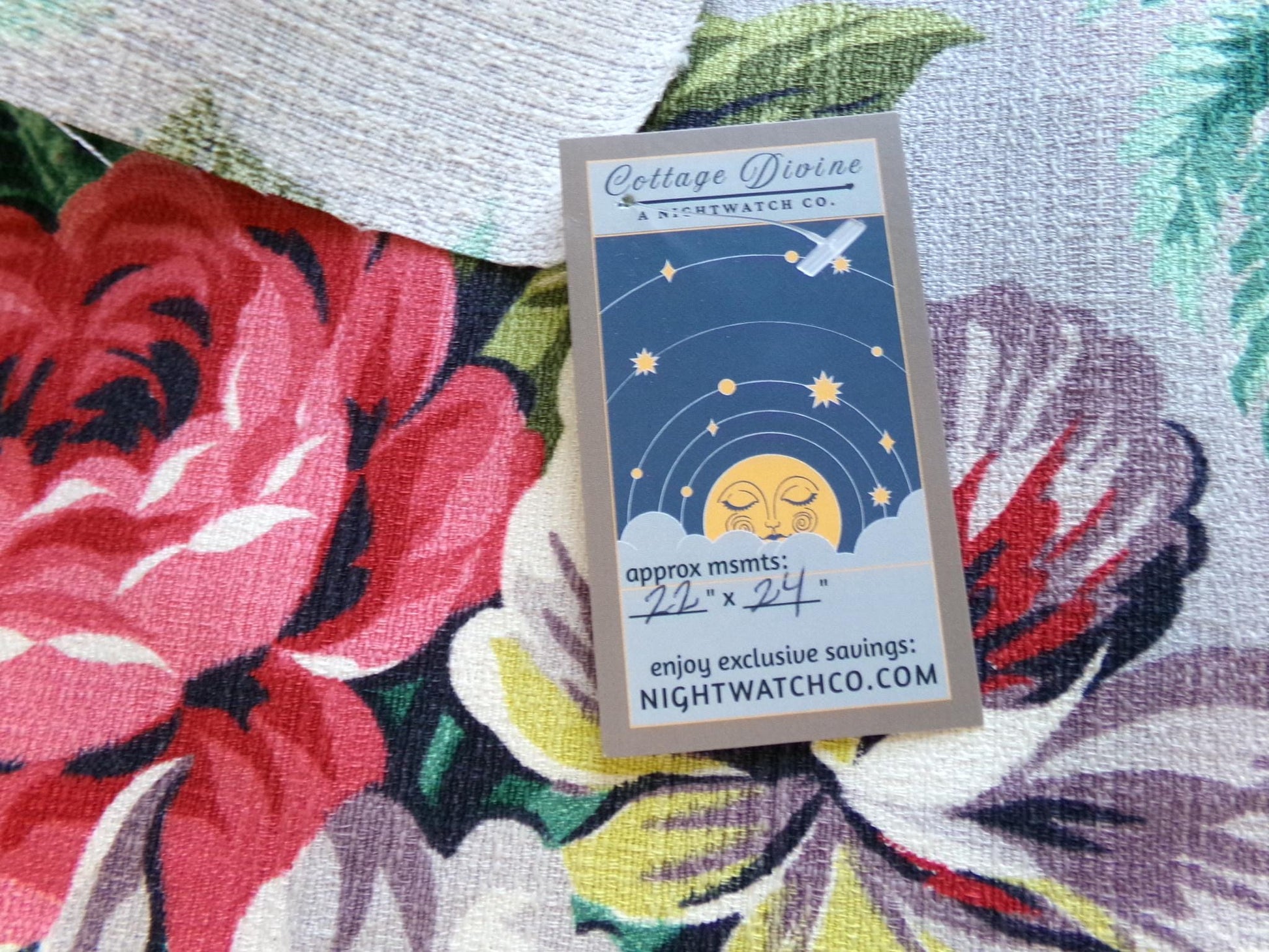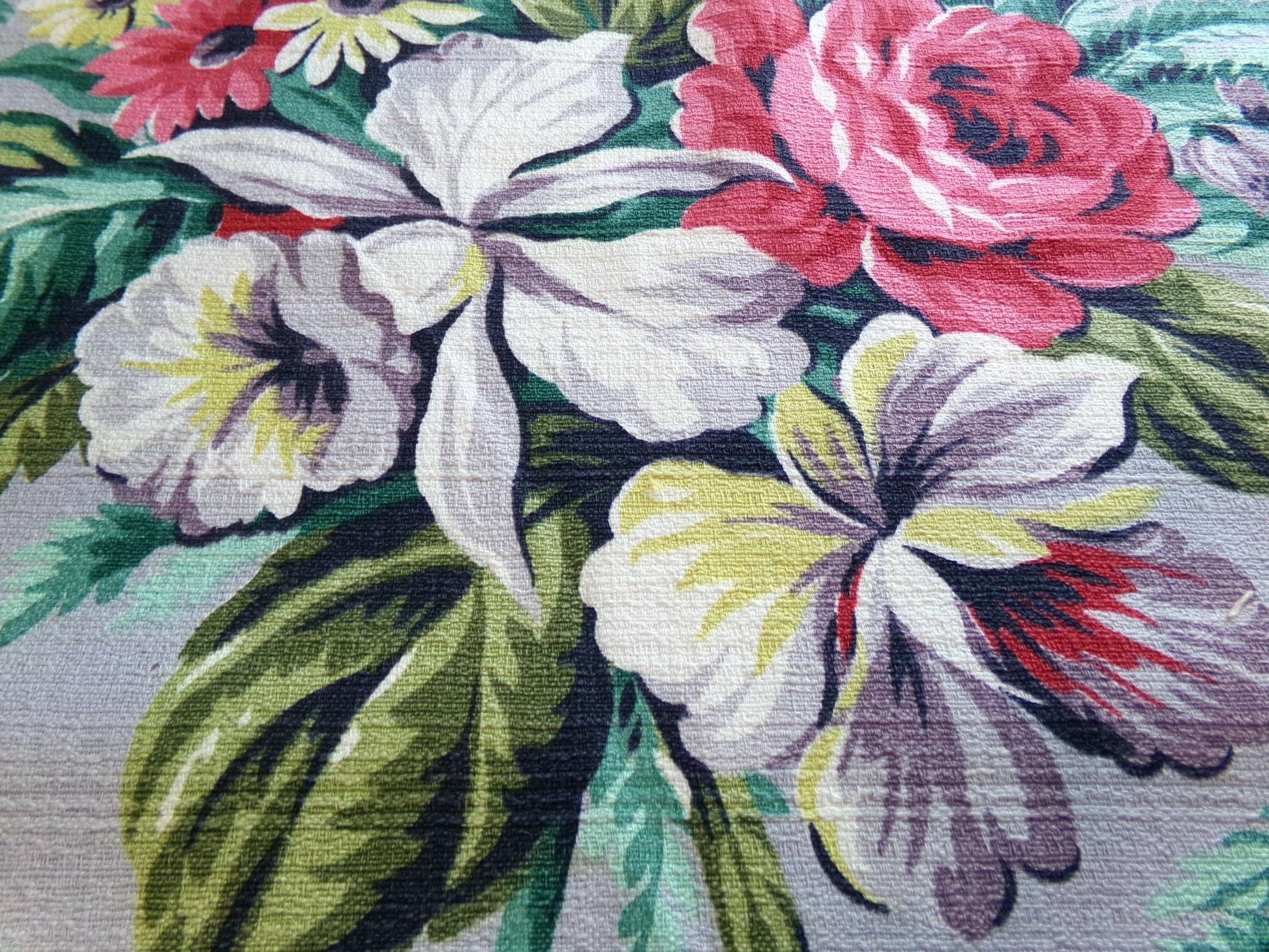 Absolutely beautiful piece of vintage barkcloth fabric featuring a showy botanical floral print on a silvery grey bkgd. Measures about 22" x 24" inches. An ideal piece for pillows or to upcycle into a wall hanging. Note some natural slub lines to fabric, as seen final img.w h a t - t o - k n o w