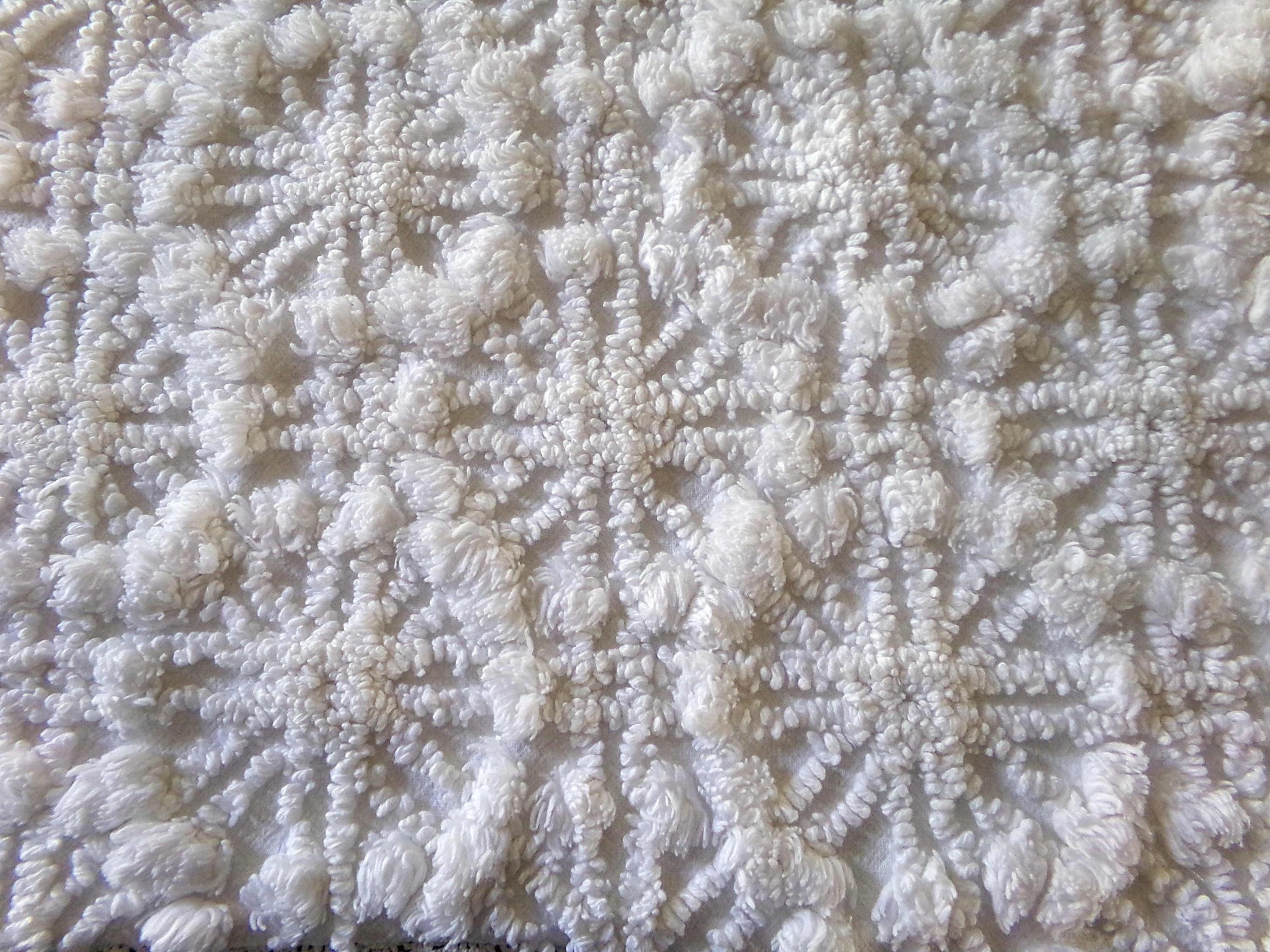 Little snowflake spoke tufts cover this amazingly gorgeous piece of vintage chenille fabric. The inner spoke is needletufted, while the surrounding circle features overtufted pops for an outstanding visual experience. Measures about 19" x 20" inches. 100% ultra plush cotton.What can you do with vintage fabric? Your inner artist is calling with so many creative possibilities: incorporate into handmade quilts, dress up a junk journal, design fun functional fabric patches & appliques, make your own DIY pillow covers, fashion makeup, essential oil bags & small totes, bring nostalgia to your scrapbooking proj, create a cute stuffed toy, craft 3D flowers, integrate into fiber art, textile arts & more..w h a t - t o - k n o w