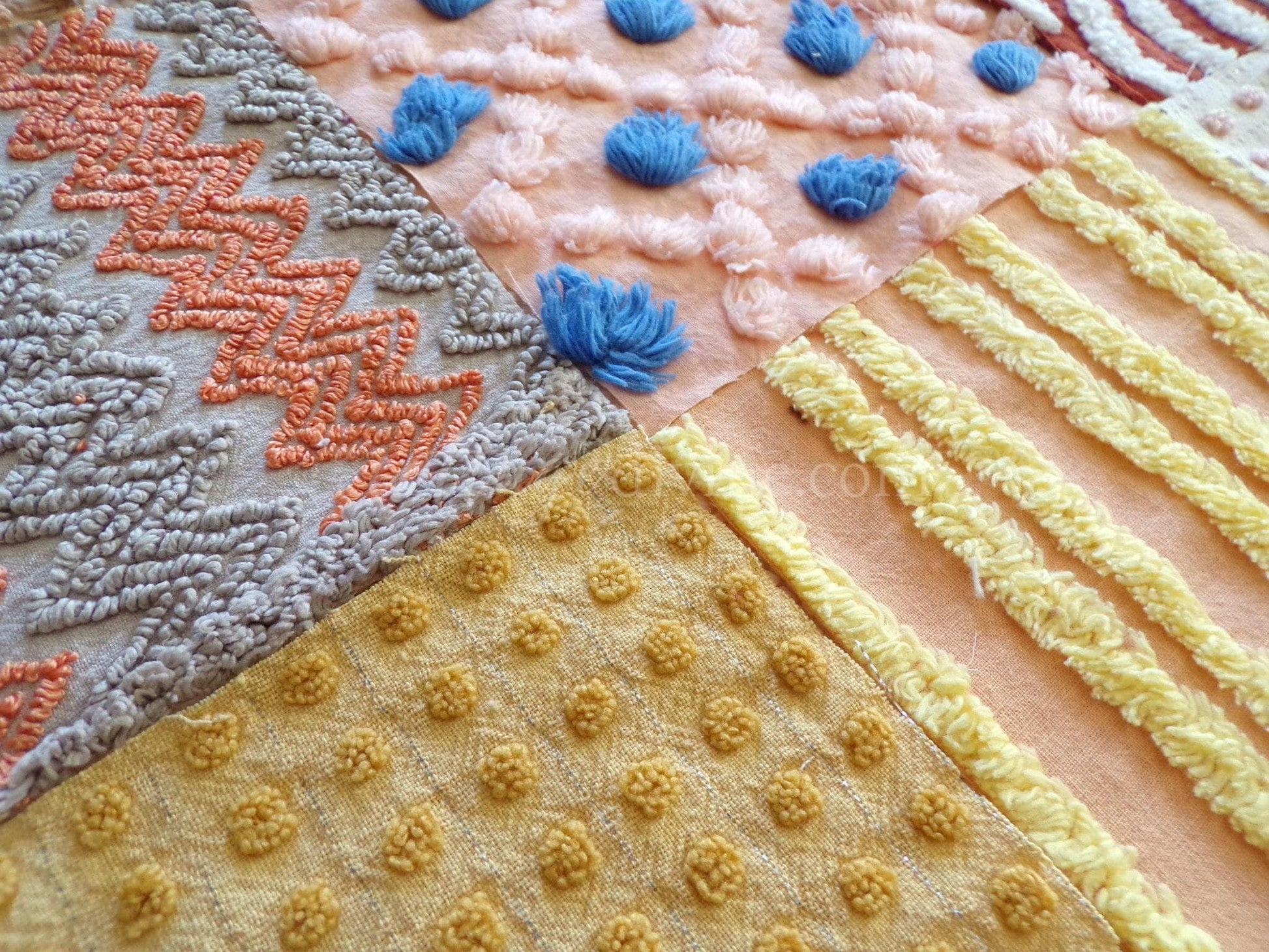 Bring the essence of a Southwestern sunrise into your special project with this 16-square set of chenille quilt blocks. Consists of an assorted premium mix of earthy Southwest style colors with a great range of textures, from the tiniest pops to fluffy tufts..::total qty: 16 chenille quilt squares::size: 6" x 6" rotary cut