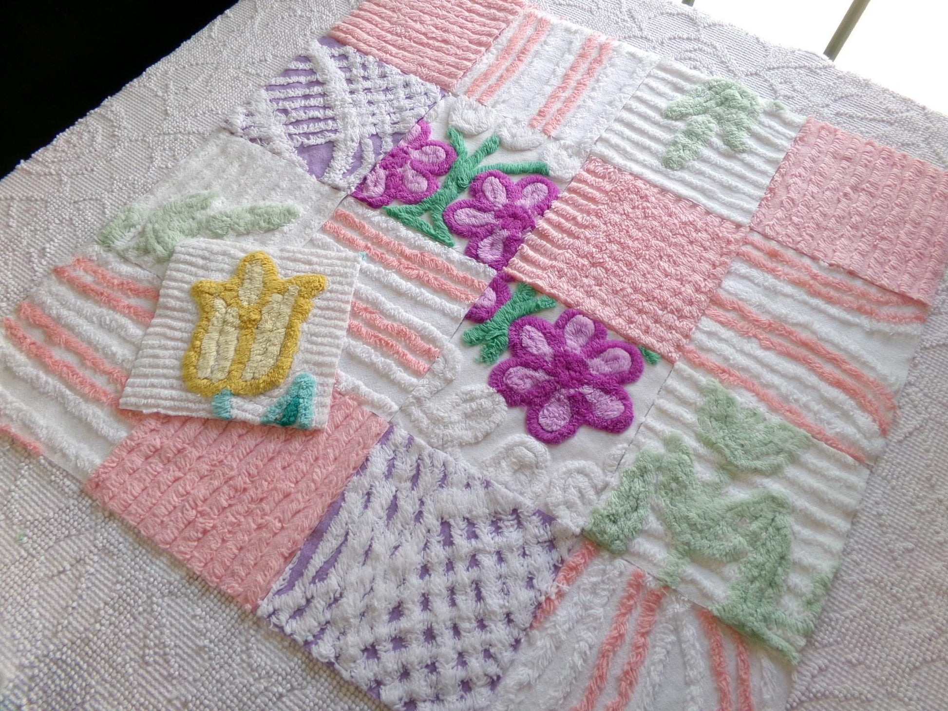 This assorted premium mix of fabric squares has been rotary cut by hand from original vintage chenille bedspreads. All are cotton or cotton blend. Ideal in DIY pillows & handmade quilts.