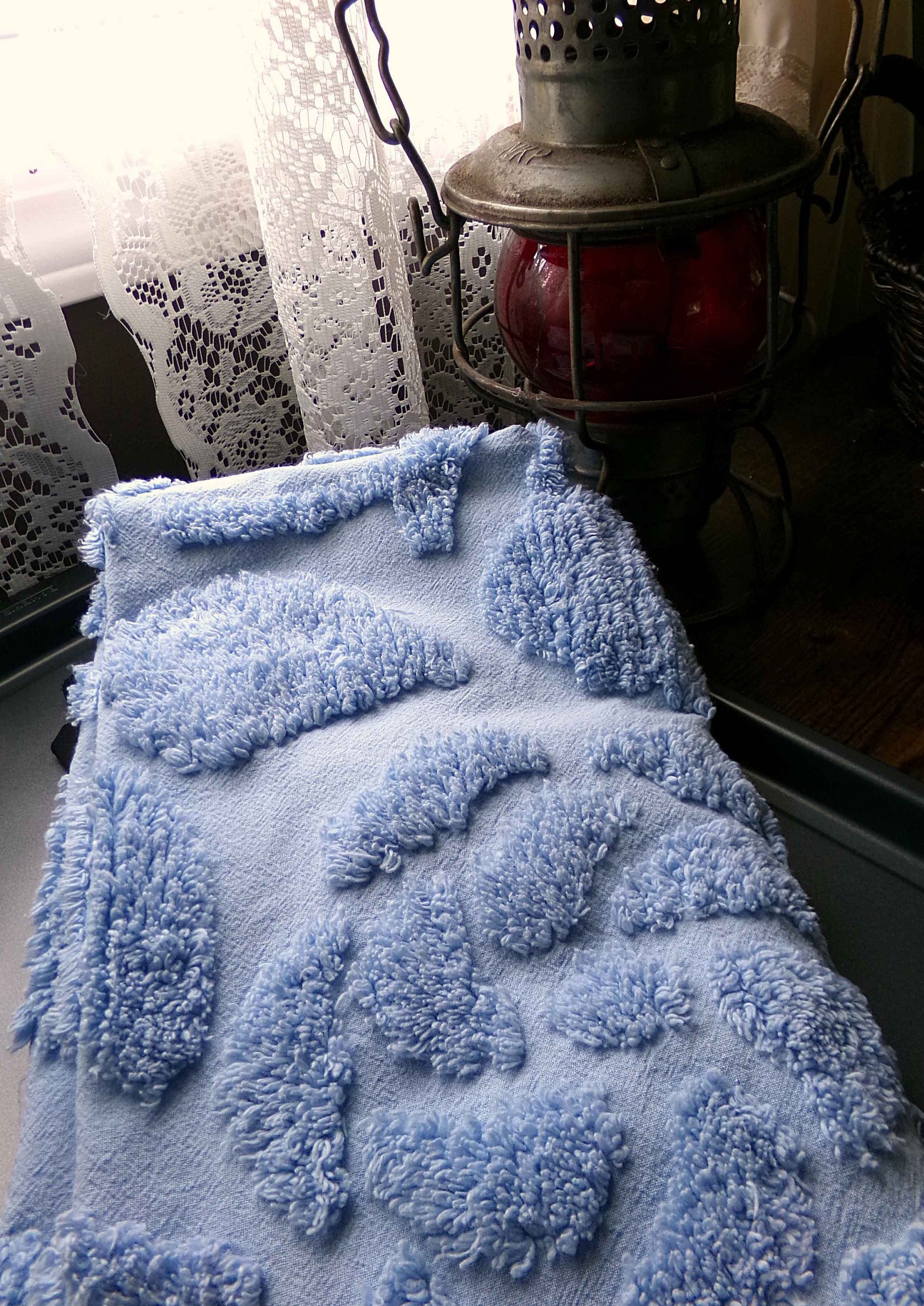 Stylized, large blue rose blooms bring a serene essence on this 30" x 26" inch piece of vintage chenille fabric. Dramatic sweeping leaves add a touch of elegance to the design. Ideal to infuse tranquility in DIY pillows, quilts & more.The fabric is very adaptive to light, so I took photos in high, low & medium settings to show this. 100% cotton, strong & easy to sew withw h a t - t o - k n o w