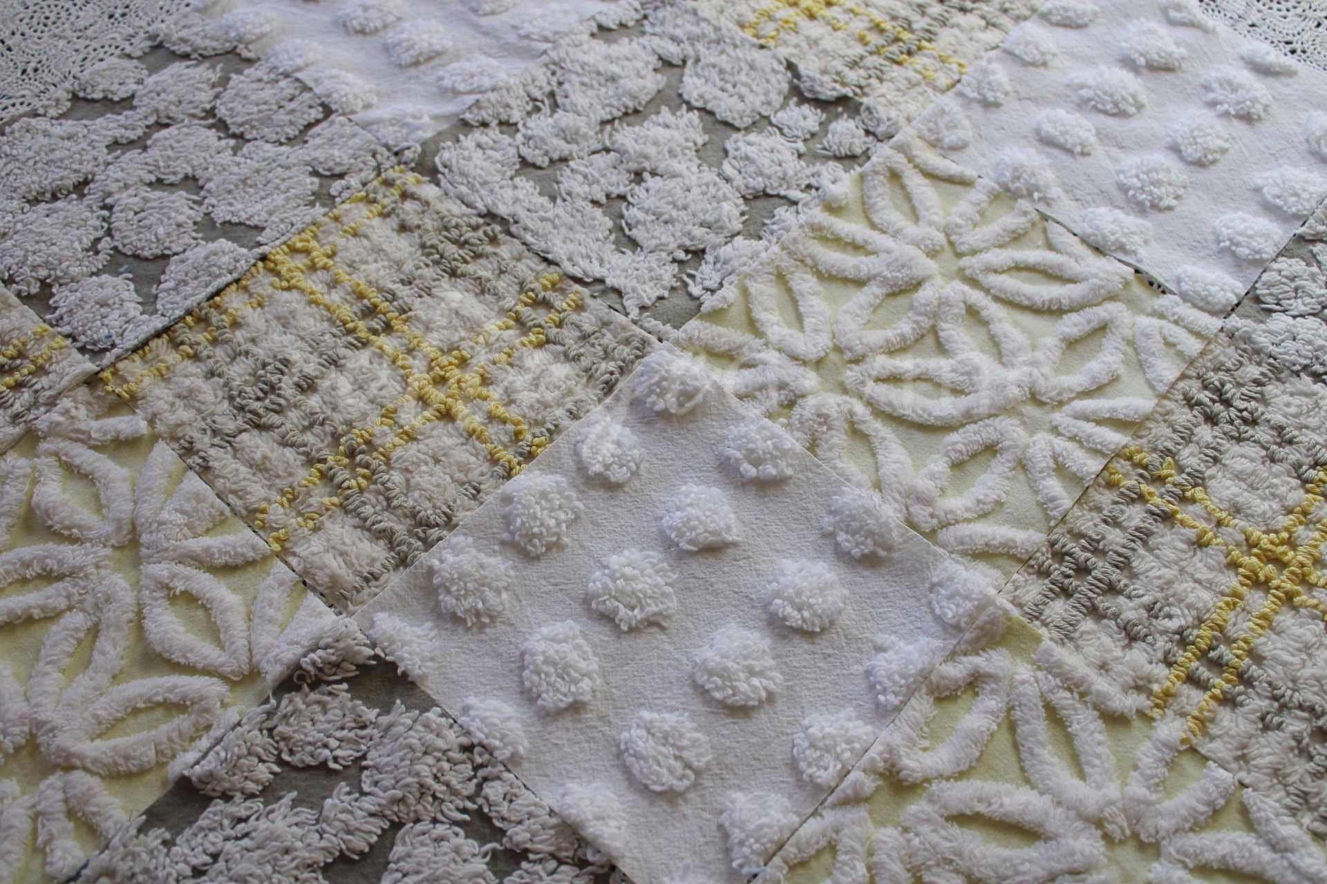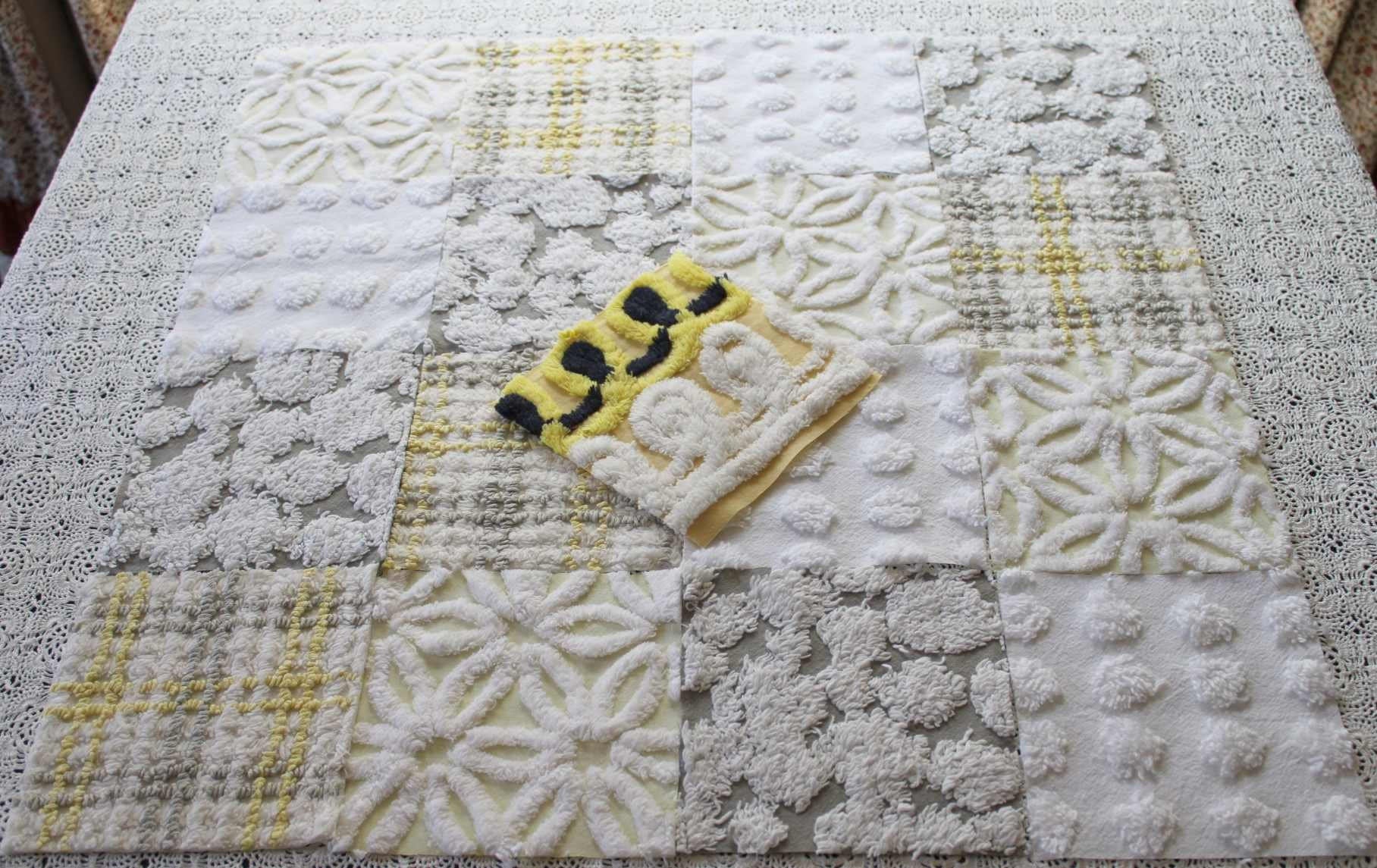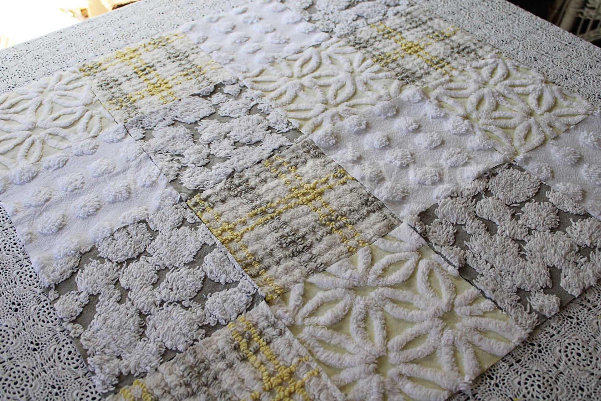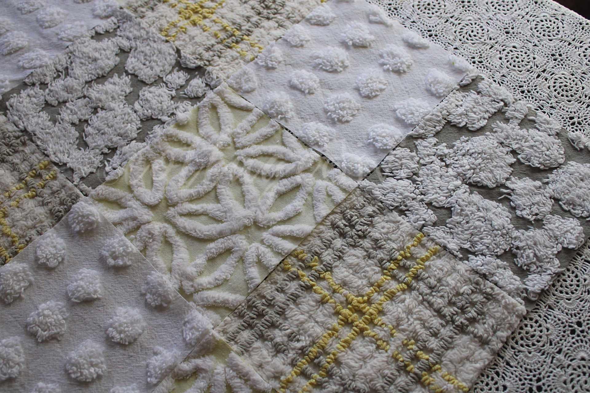 Sun & Clouds...an uplifting set of craft squares in a blend of white & grey with shades of yellow...like a cloudy day, with sunshine peeking in :)::total qty: 17 chenille fabric quilt squares