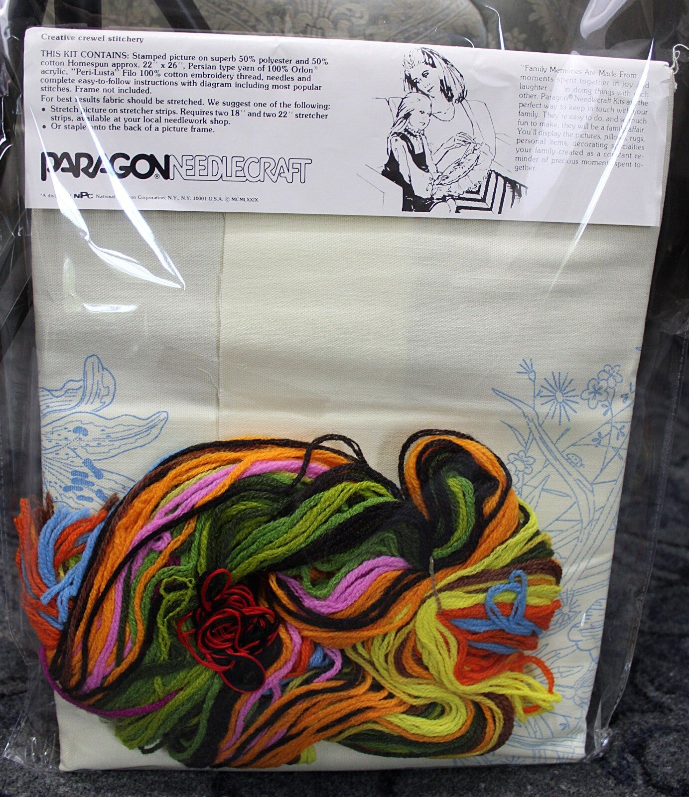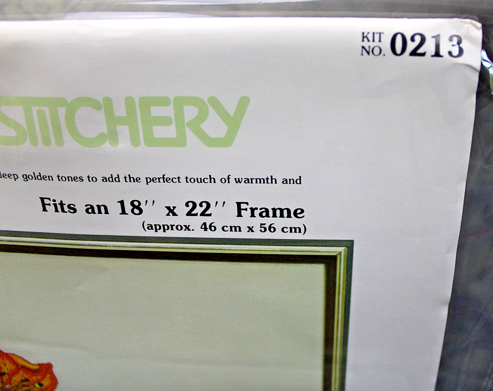 TIGER LILIES..."Lovely lilies ablaze in glorious deep golden tones to add the perfect touch of warmth and harmony to any room setting..."This striking retro crewel embroidery kit is simply called "Tiger Lilies" by Paragon Needlecraft, kit #0213. Intended to fit an 18" x 22" inch frame when complete (frame not included).