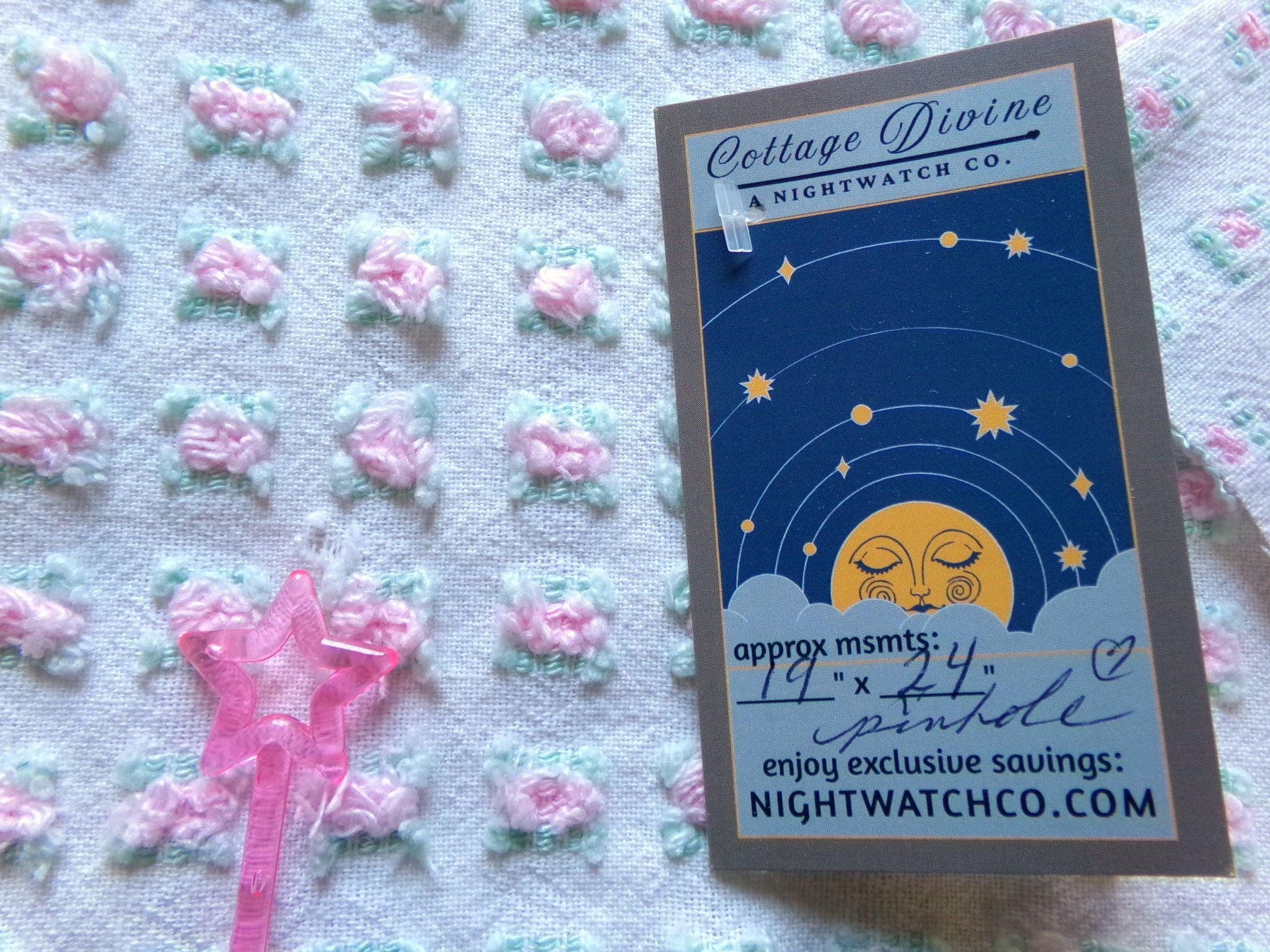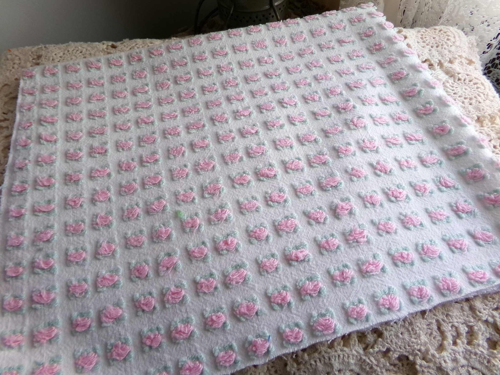 It's everyone's favorite pink rosebud chenille fabric - in miniature form...These tiny tufted roses are much smaller than the usual plump rosebuds you might be more familiar with (see img with ruler to show scale). And are they ever cute in a pretty soft pink. Given the lightness of the piece, you may notice some minor fabric separations, such as seen final img. Morgan Jones chenille bedspread from the 1960s. w h y - v i n t a g e? Incorporating vintage fabric into your project brings unique benefits: an unparalleled charm, a whisper of nostalgia...a deep-rooted history embedded in every fiber. Not only is the quality often superior to modern, vintage fabric is a sustainable choice - an eco-friendly option that stands out in a world consumed by mass-produced goods. For your next cherished design, think vintage <3 w h a t - t o - k n o w -this is a vintage fabric piece, not an entire bedspread -linens laundered/stored near fragranced products -expect vintage attributes such as pinholes, age spots, pulled threads, color variances, etc. - combined shipping available; overages over $1 refunded