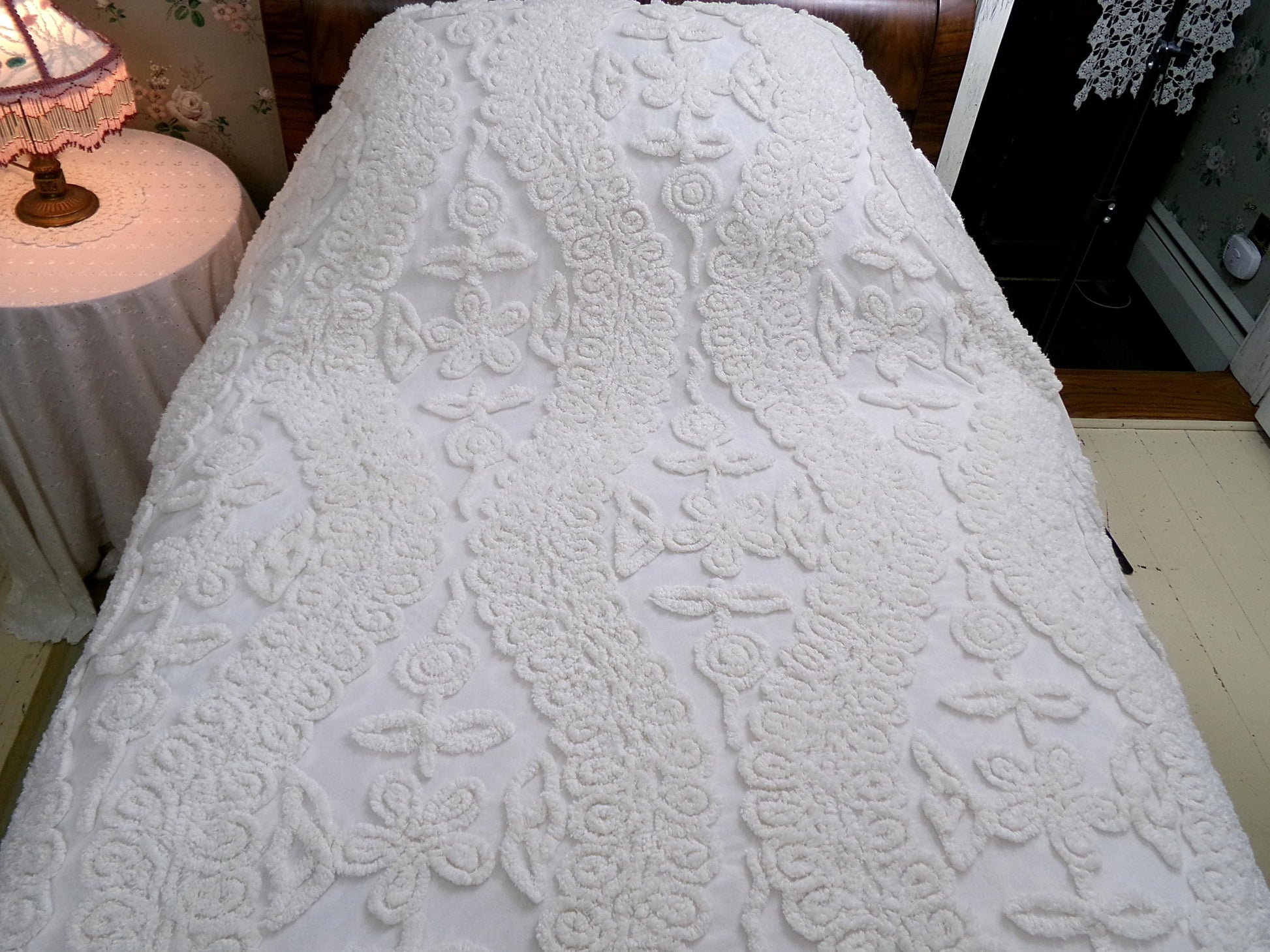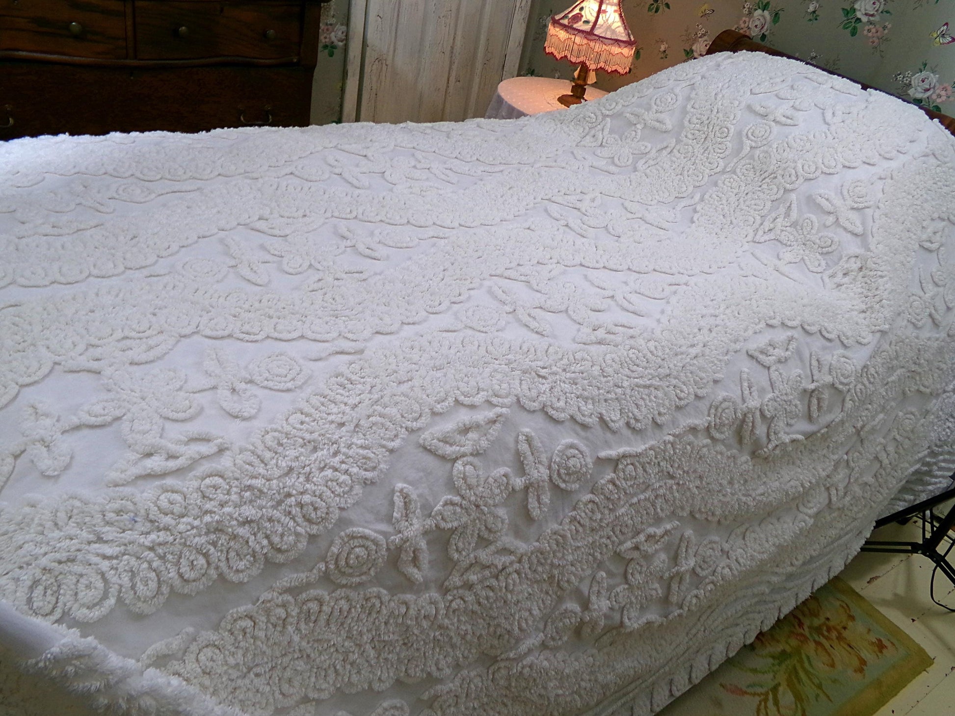see more, cottagedivine.comTransform your bedroom into a time capsule retreat with this ultra rare vintage chenille bedspread from Canyon Group Damze. If the pattern looks familiar, you may recognize it from the "wedding cake" style robes made famous in the 90s TV show, The Nanny. It has been in my personal collection for many years, and now it is time to become a treasure for someone else.