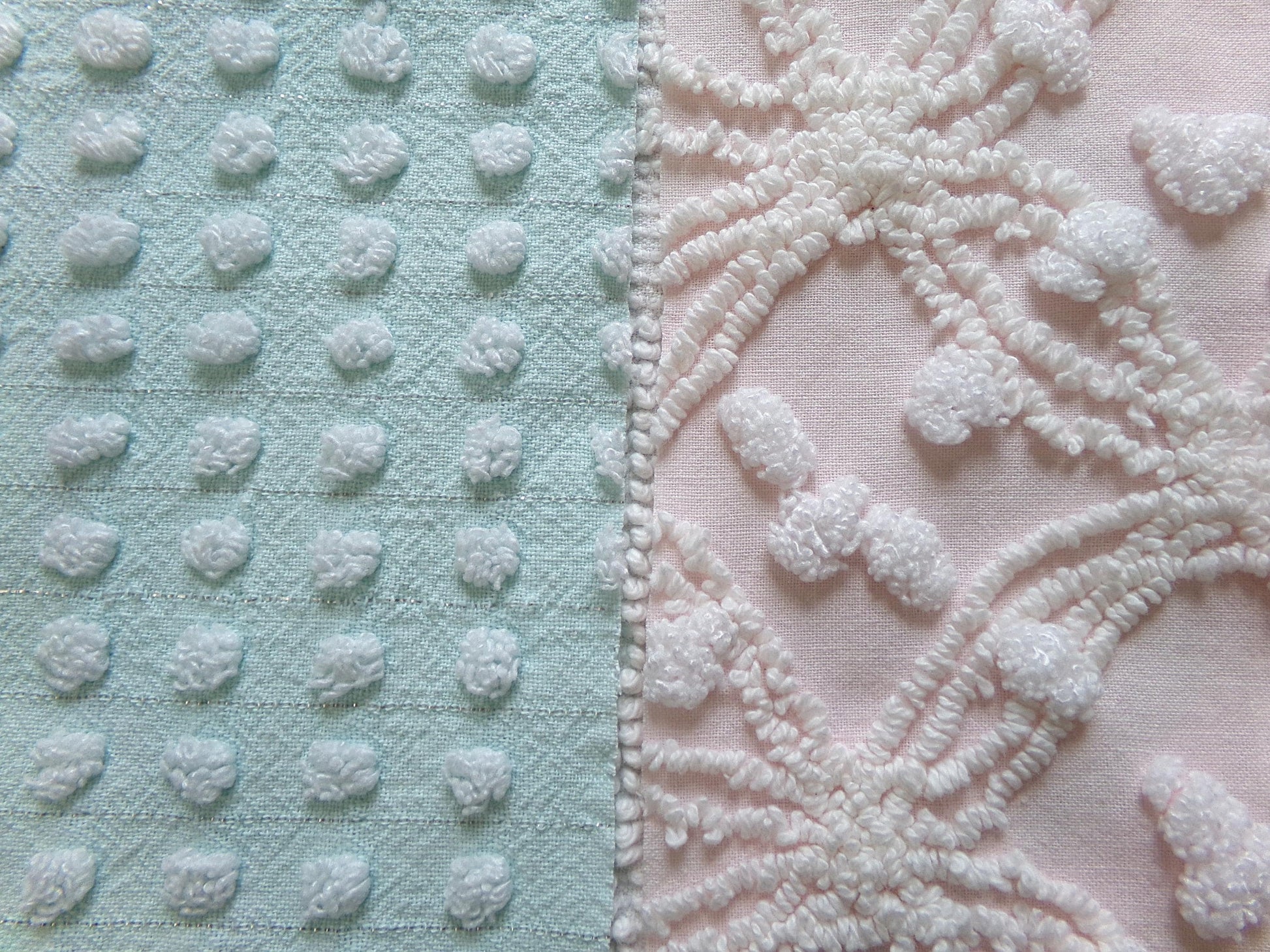 • 2 premium vintage chenille fabric pieces (NOT a whole bedspread)