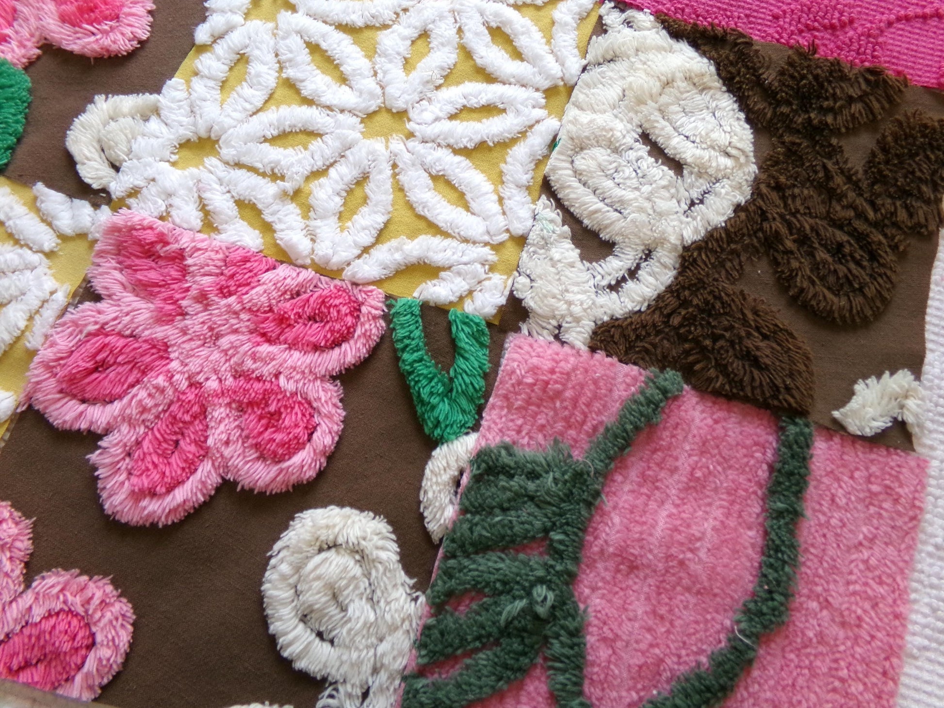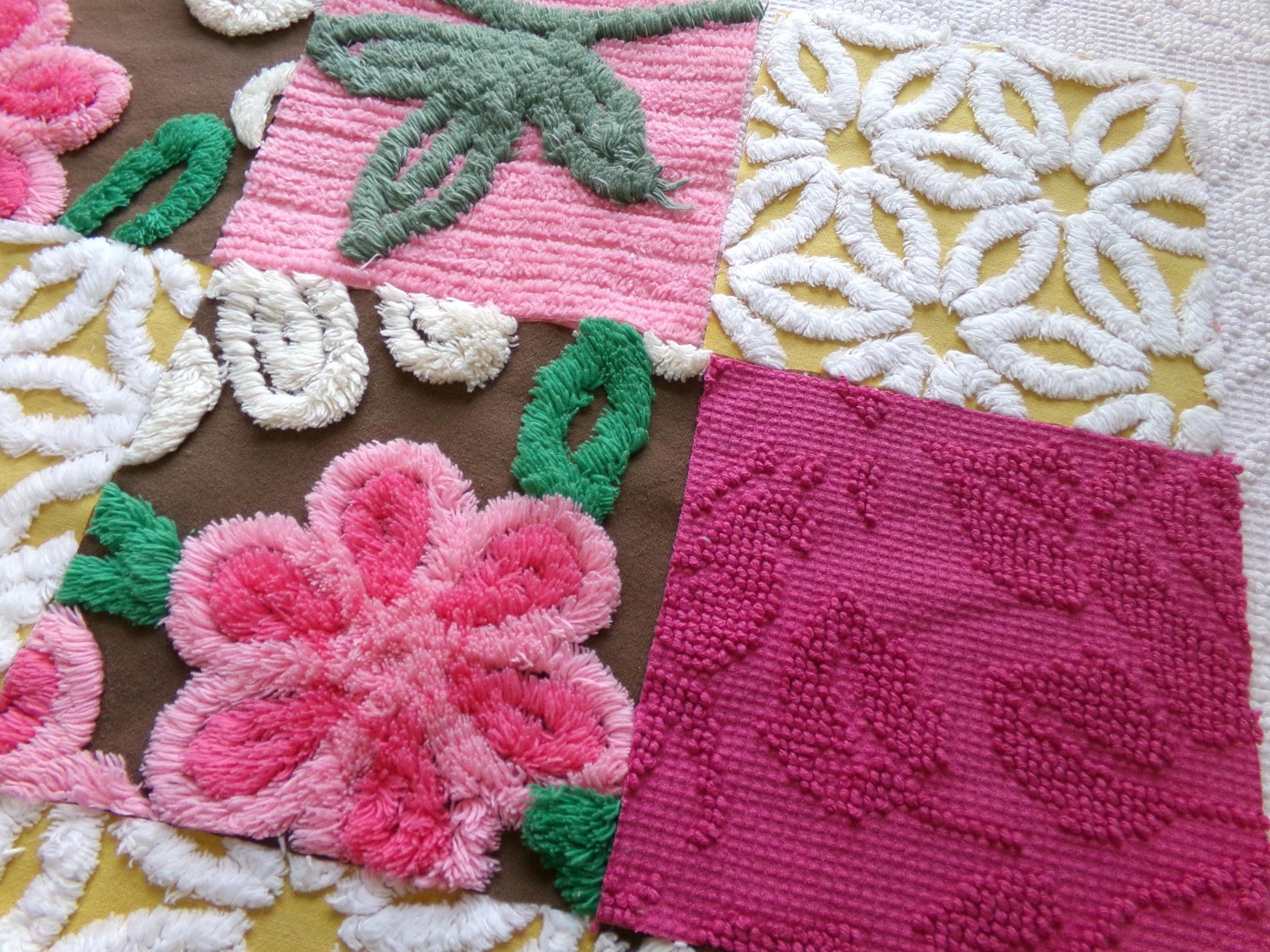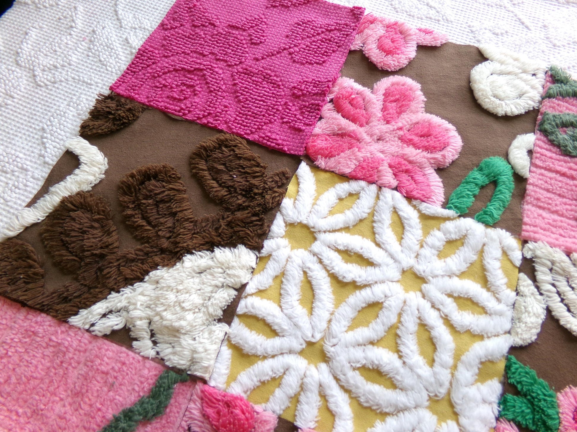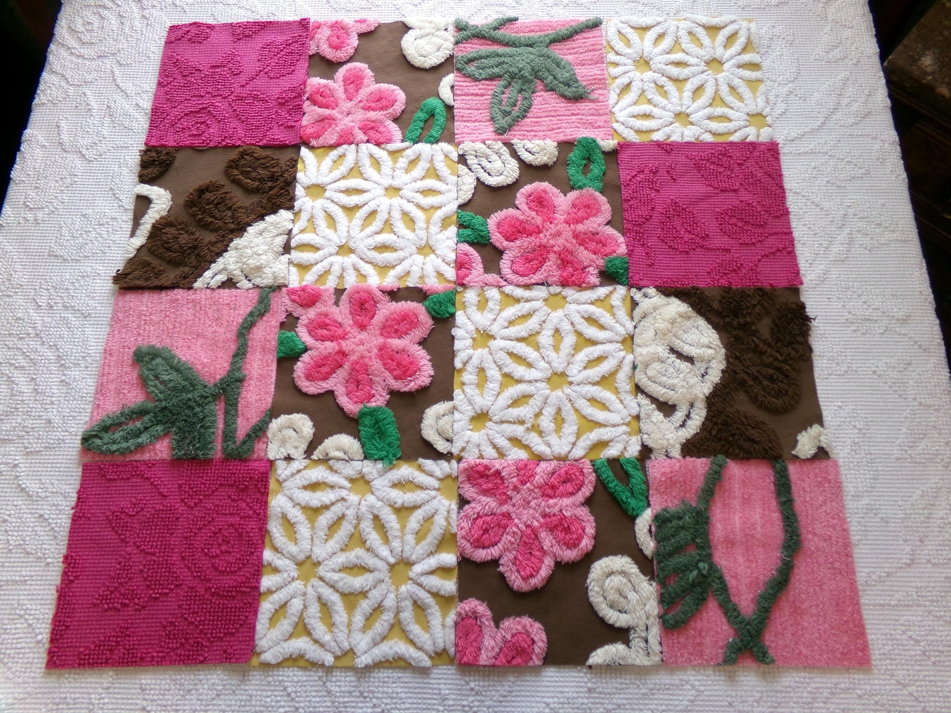 see more, cottagedivine.comWhat a fun set of 16 vintage style chenille fabric squares measuring 6" each... I chose some really different shades and patterns to inspire your own creativity.