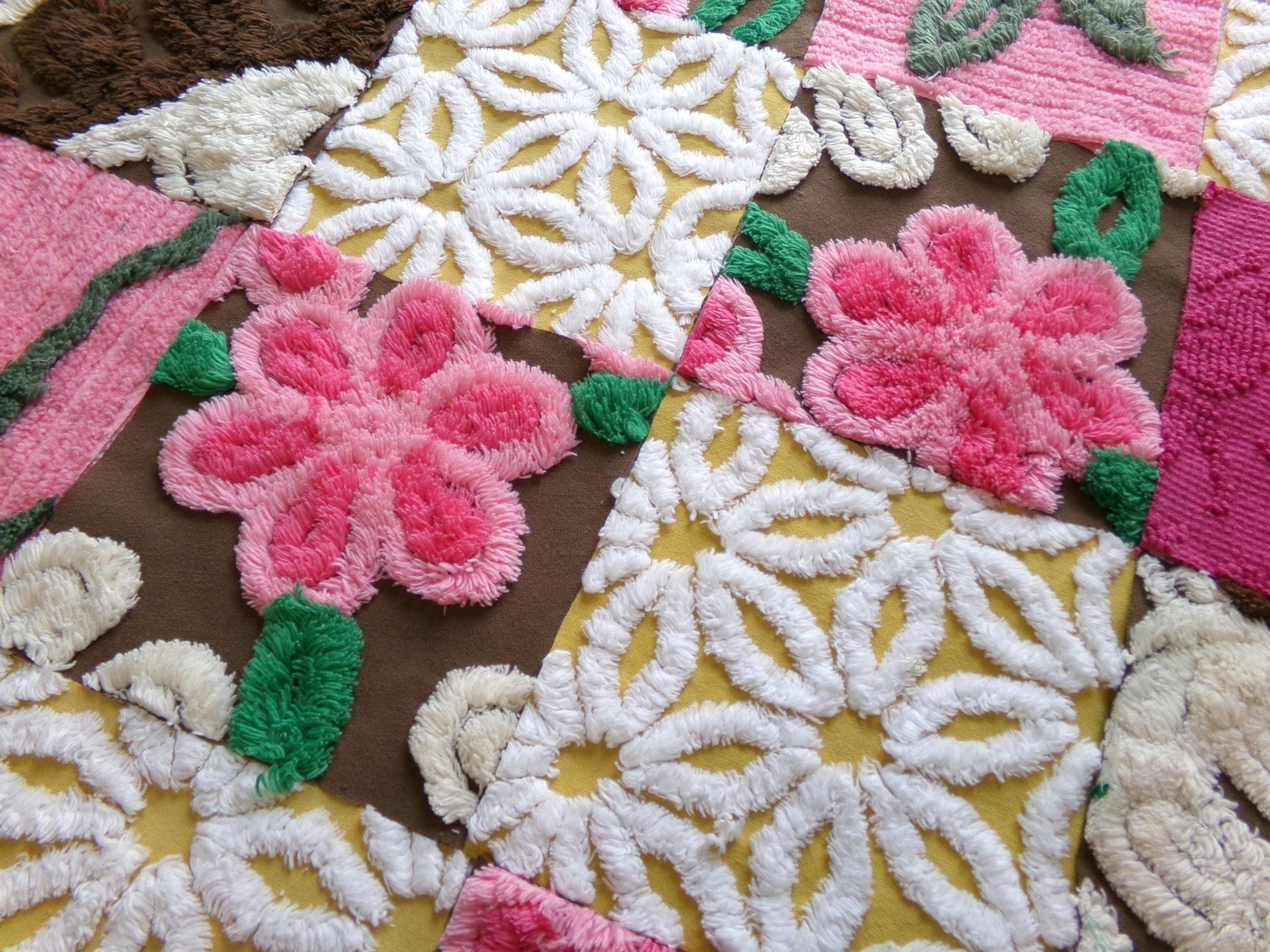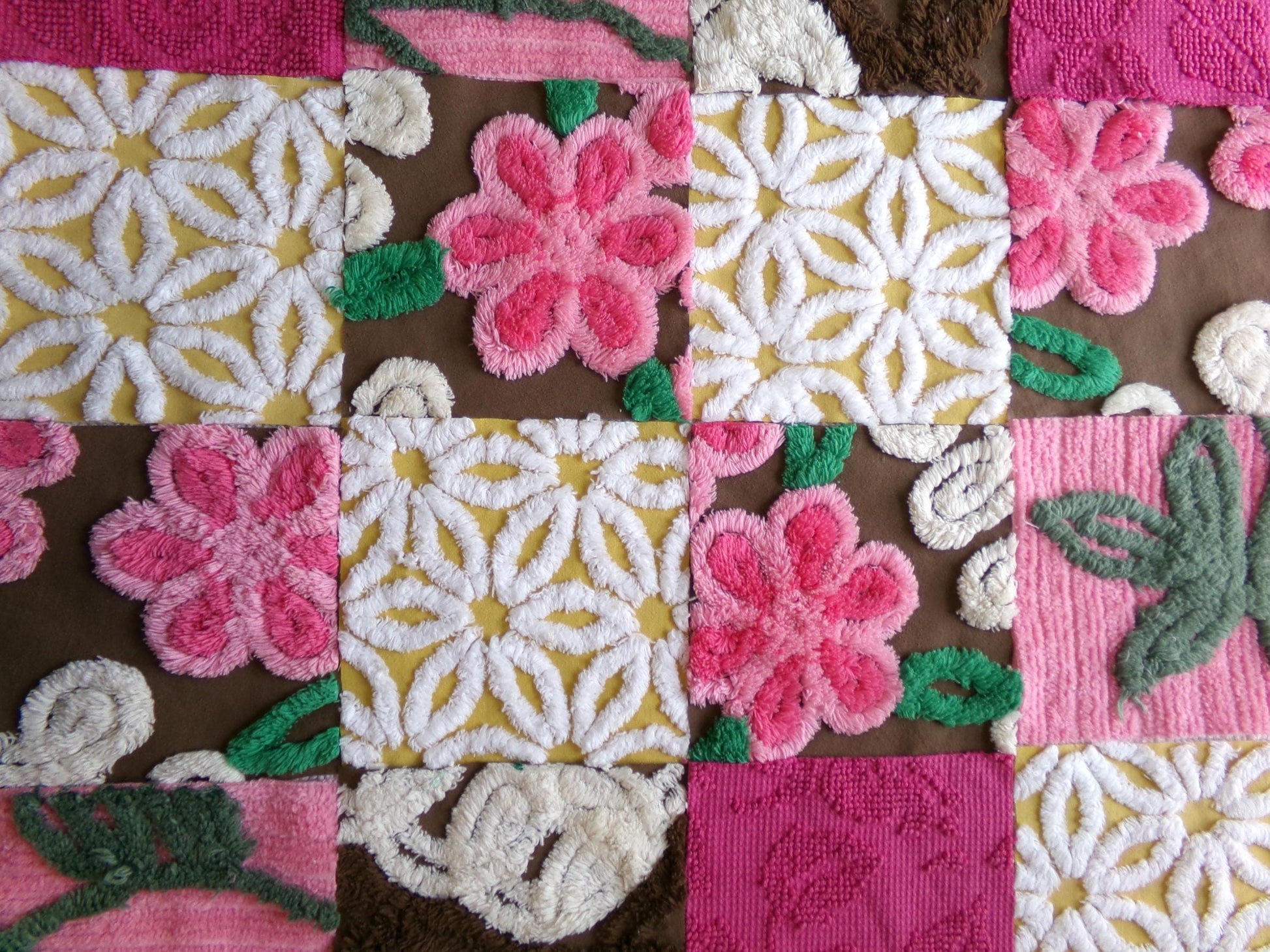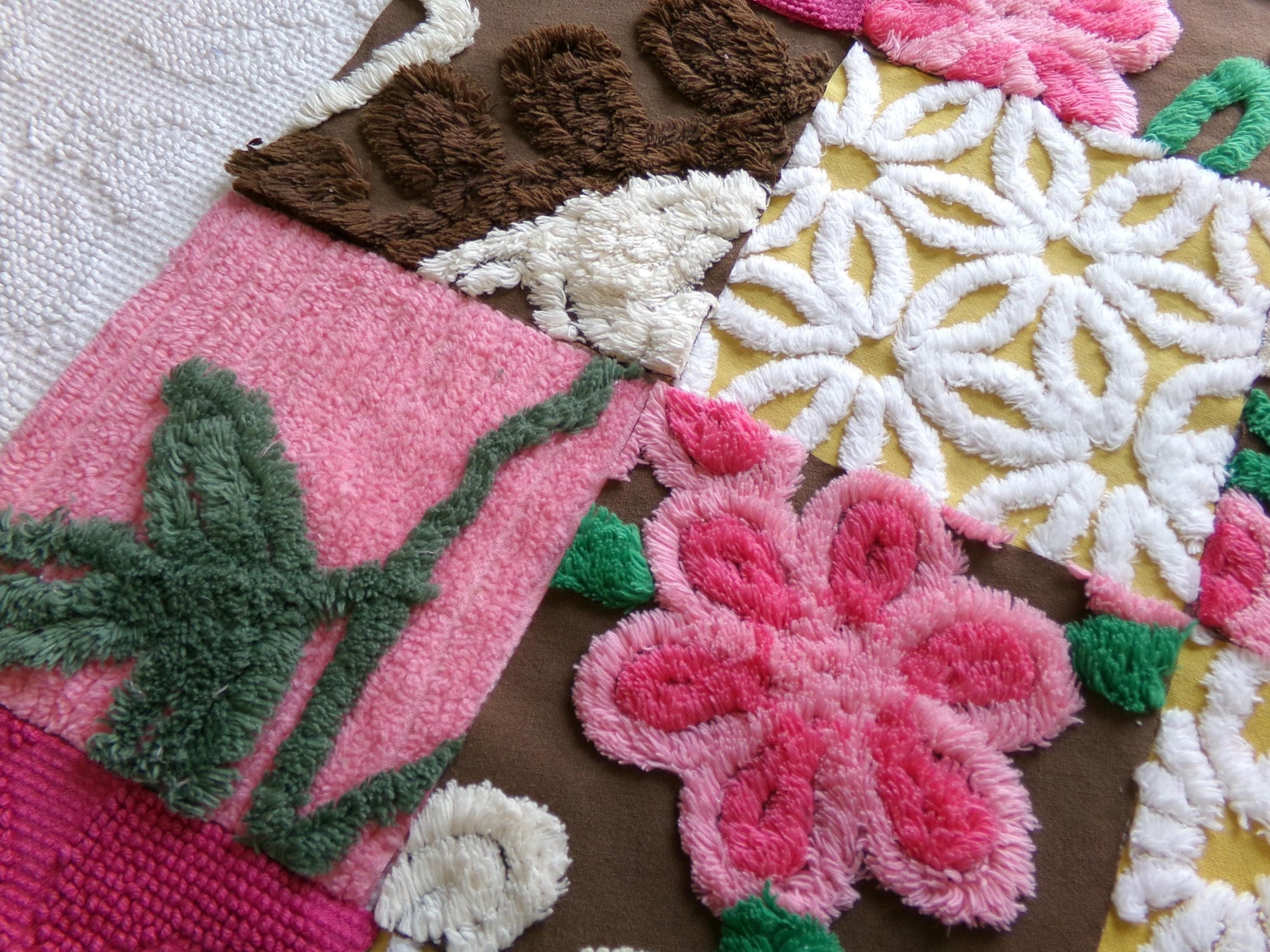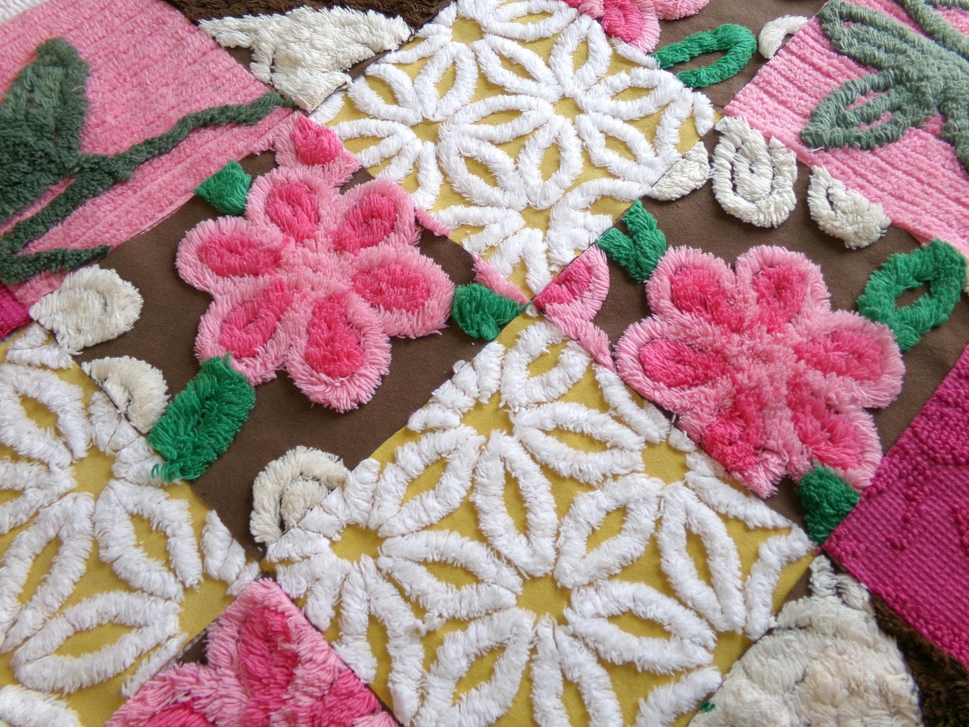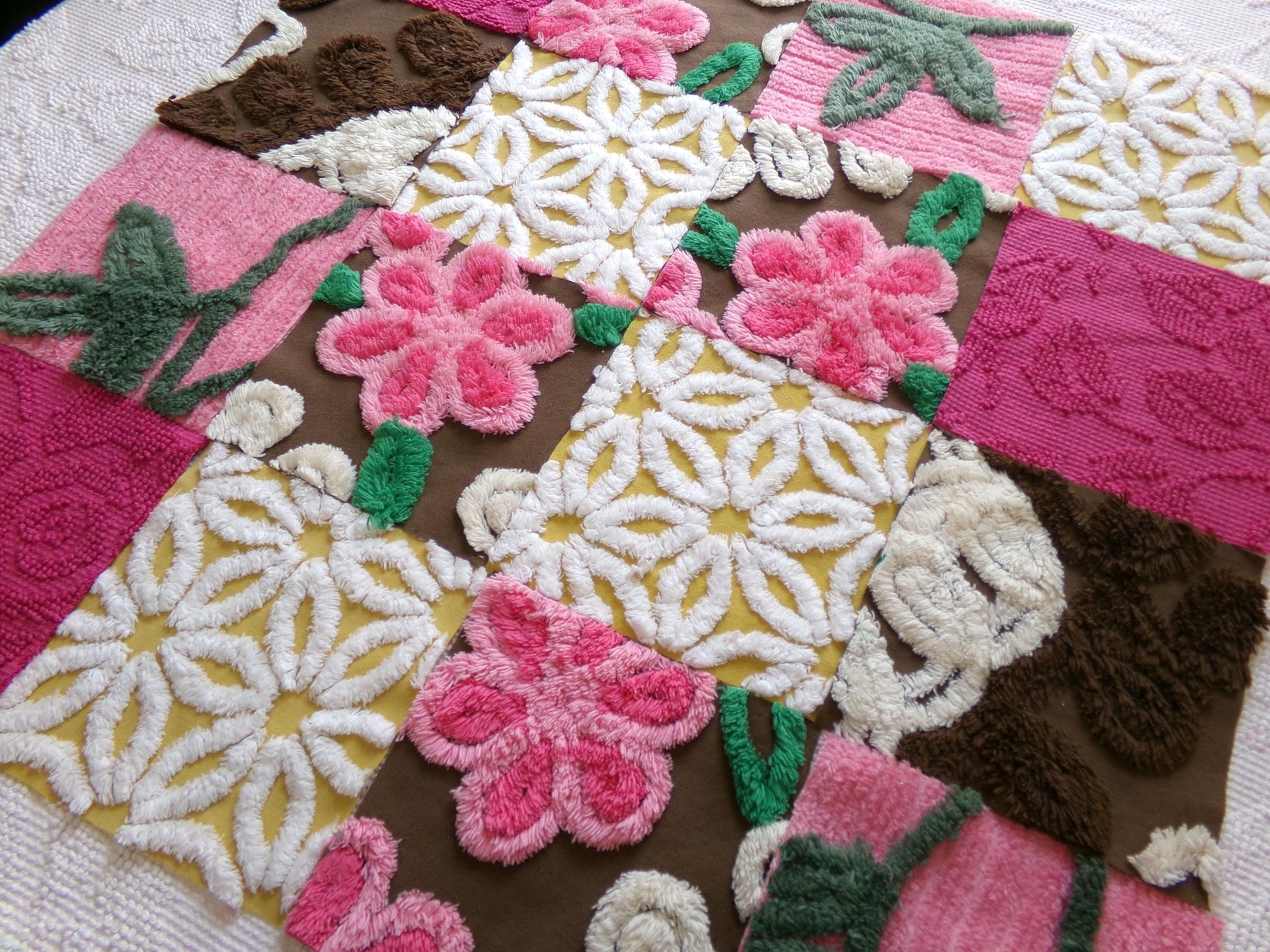 see more, cottagedivine.comWhat a fun set of 16 vintage style chenille fabric squares measuring 6" each... I chose some really different shades and patterns to inspire your own creativity.