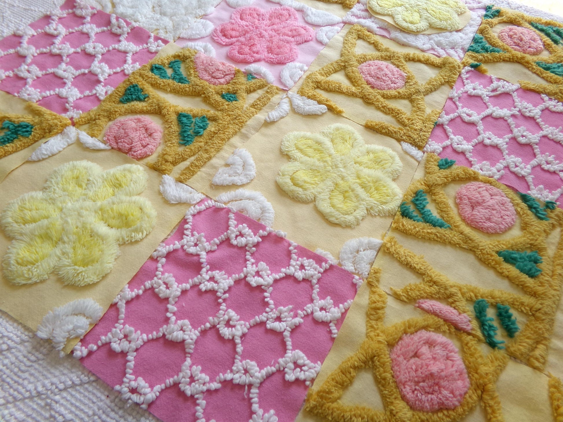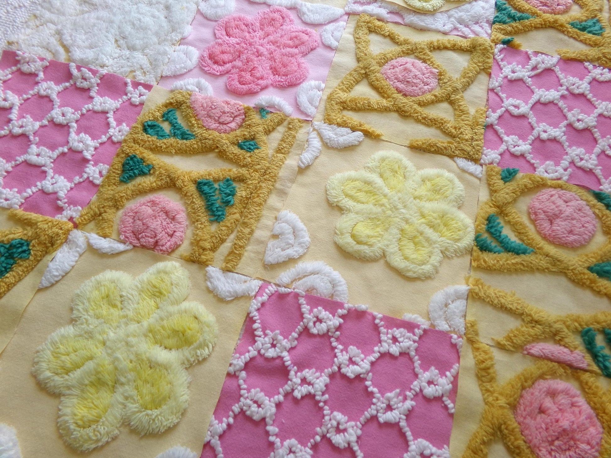 see more, cottagedivine.comOh sew lovely, this is a set of 16 vintage chenille fabric squares measuring 6" each. For this OOAK set, I chose some of my most treasured shabby cottage fabrics to inspire your own creativity.