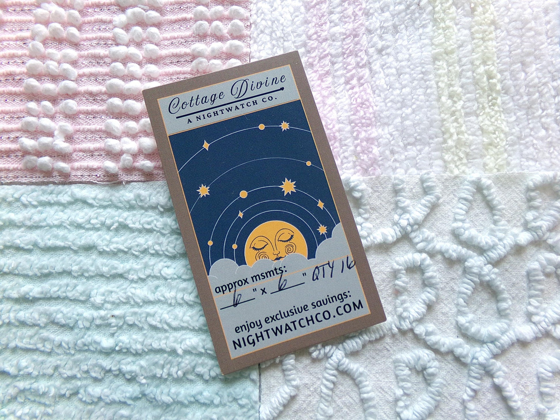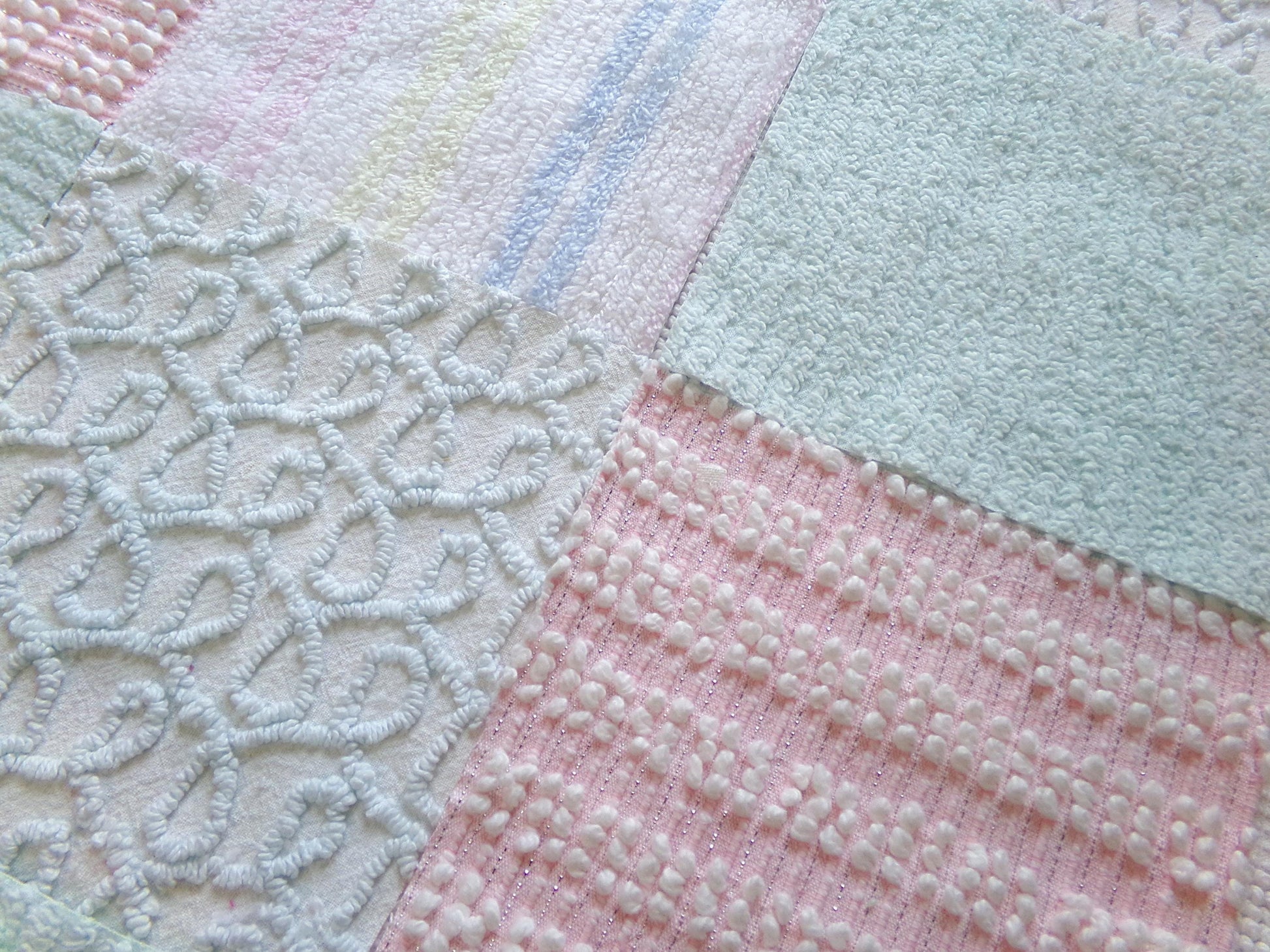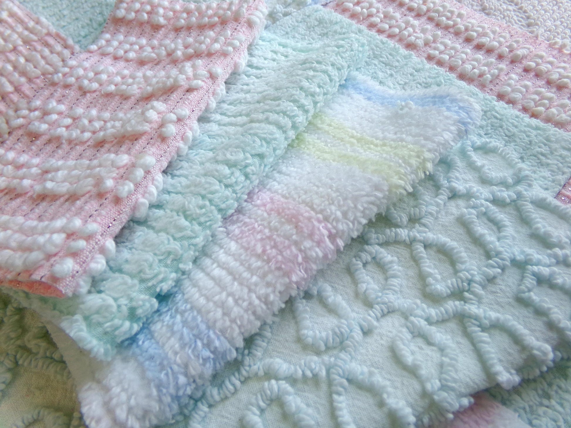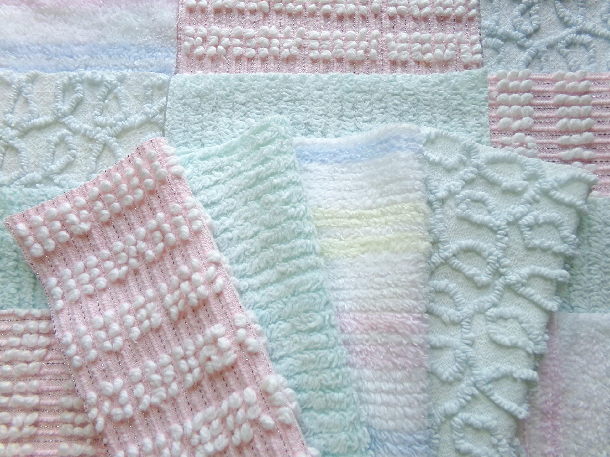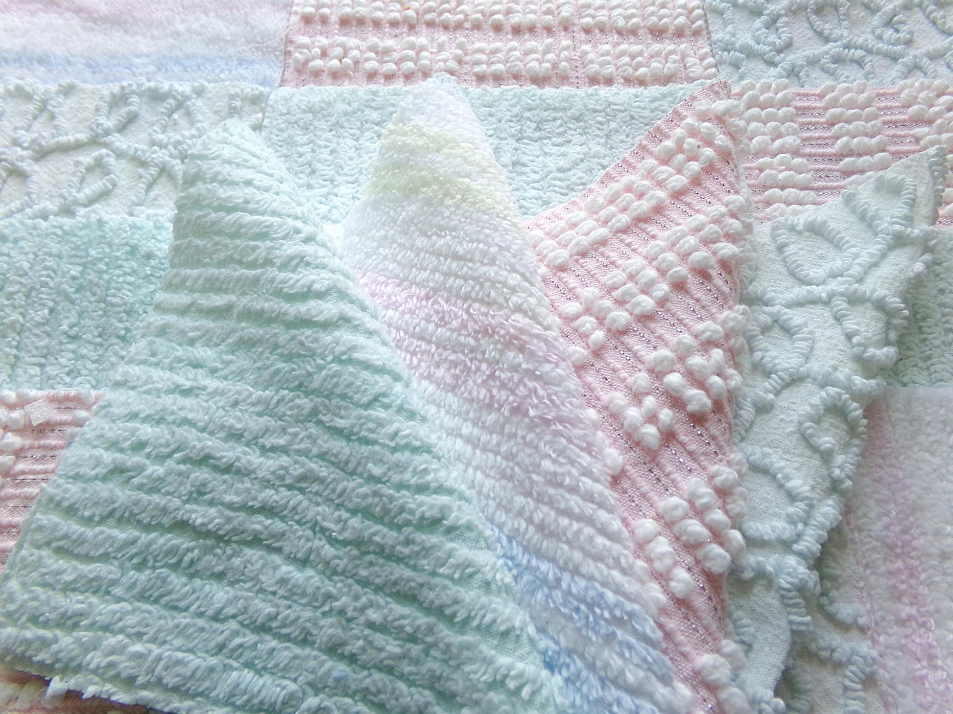 see more, cottagedivine.comIncorporate the gentle colors of a misty rainbow into your project with this set of 16 vintage chenille fabric squares measuring 6" each. For this set, I selected soothing fabric colors in a rainbow of soft shades to inspire your own creativity.