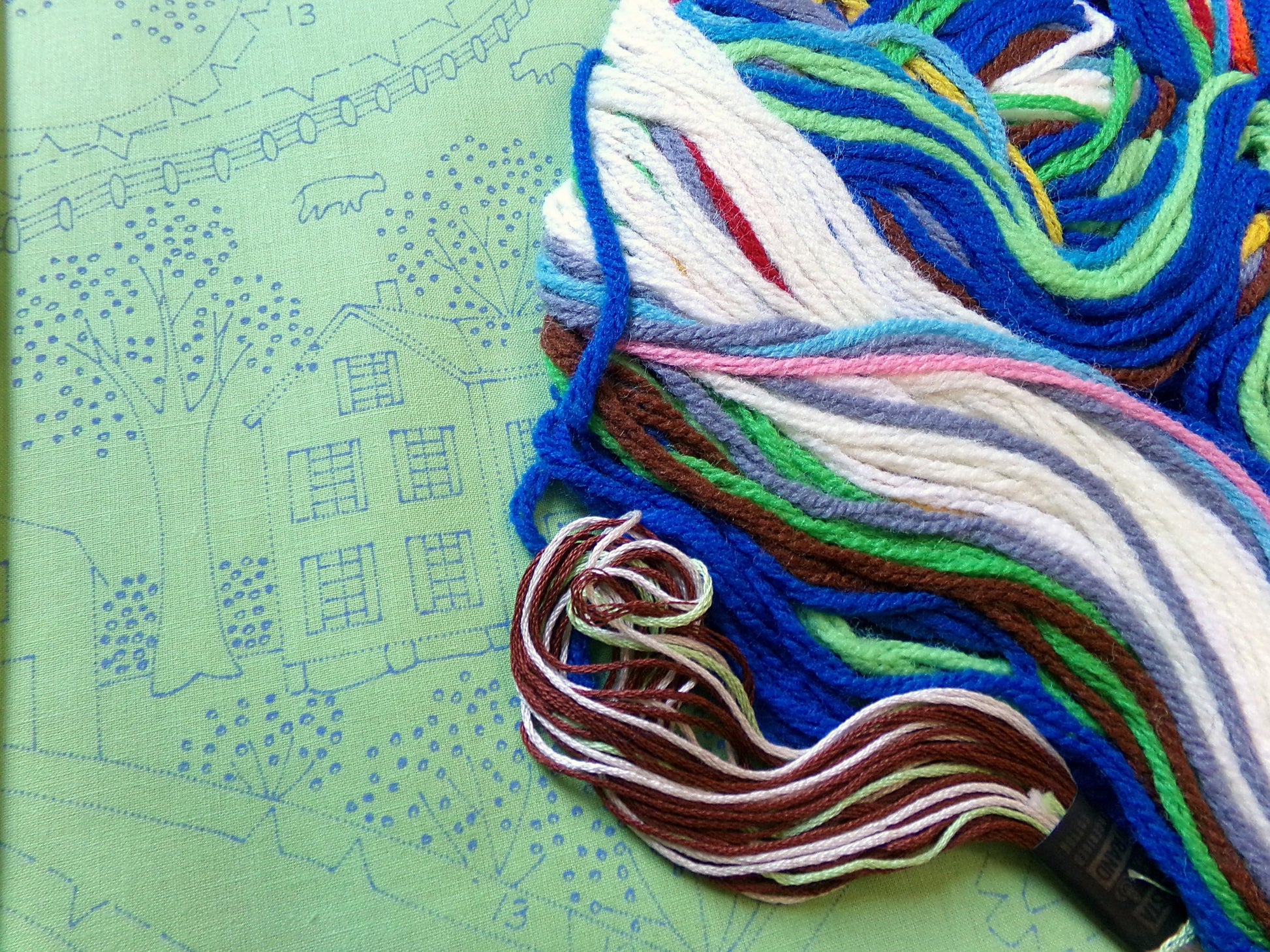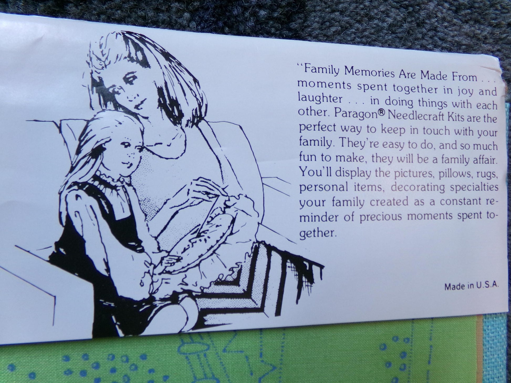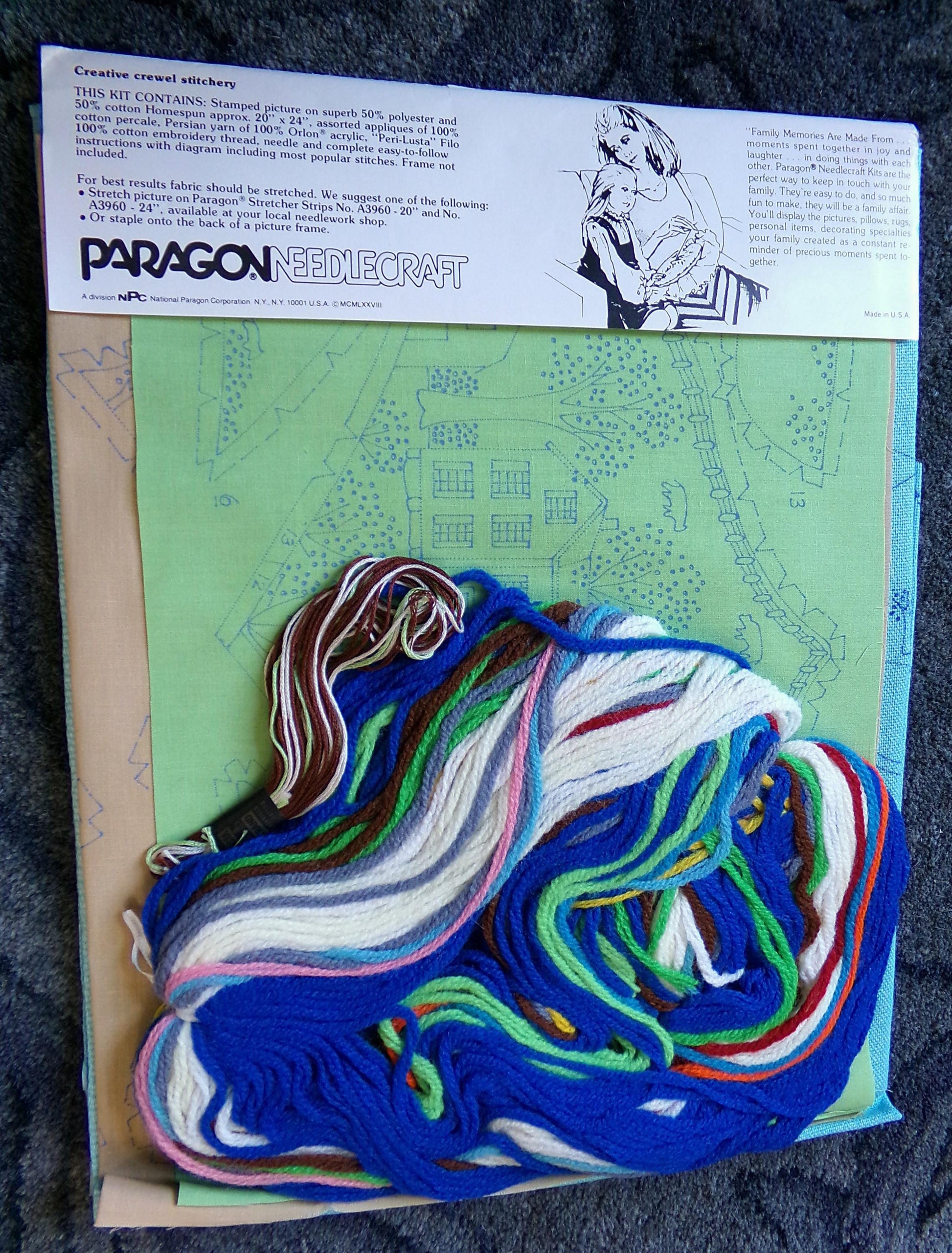 "The Big Farm in the Spring" ... "Recreate in stitchery this exquisite American Folk Scene depicting rural life in Georgia...inspired by the painting by Mattie Lou O'Kelley painted in 1976, as seen in the permanent collection at The Museum of American Folk Art, New York City."• Paragon Needlecraft Kit #0125