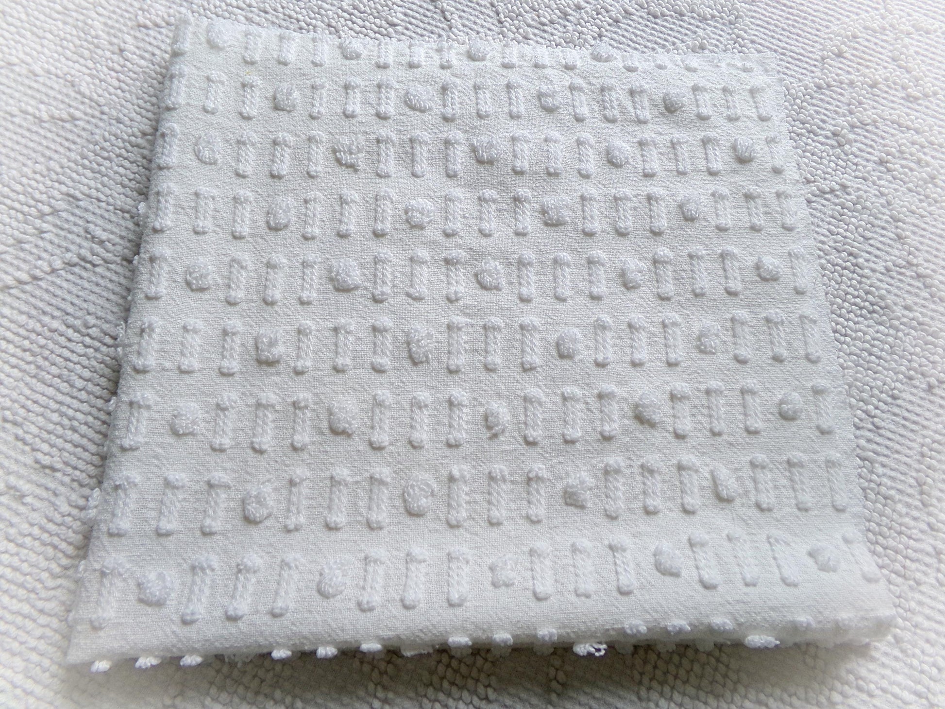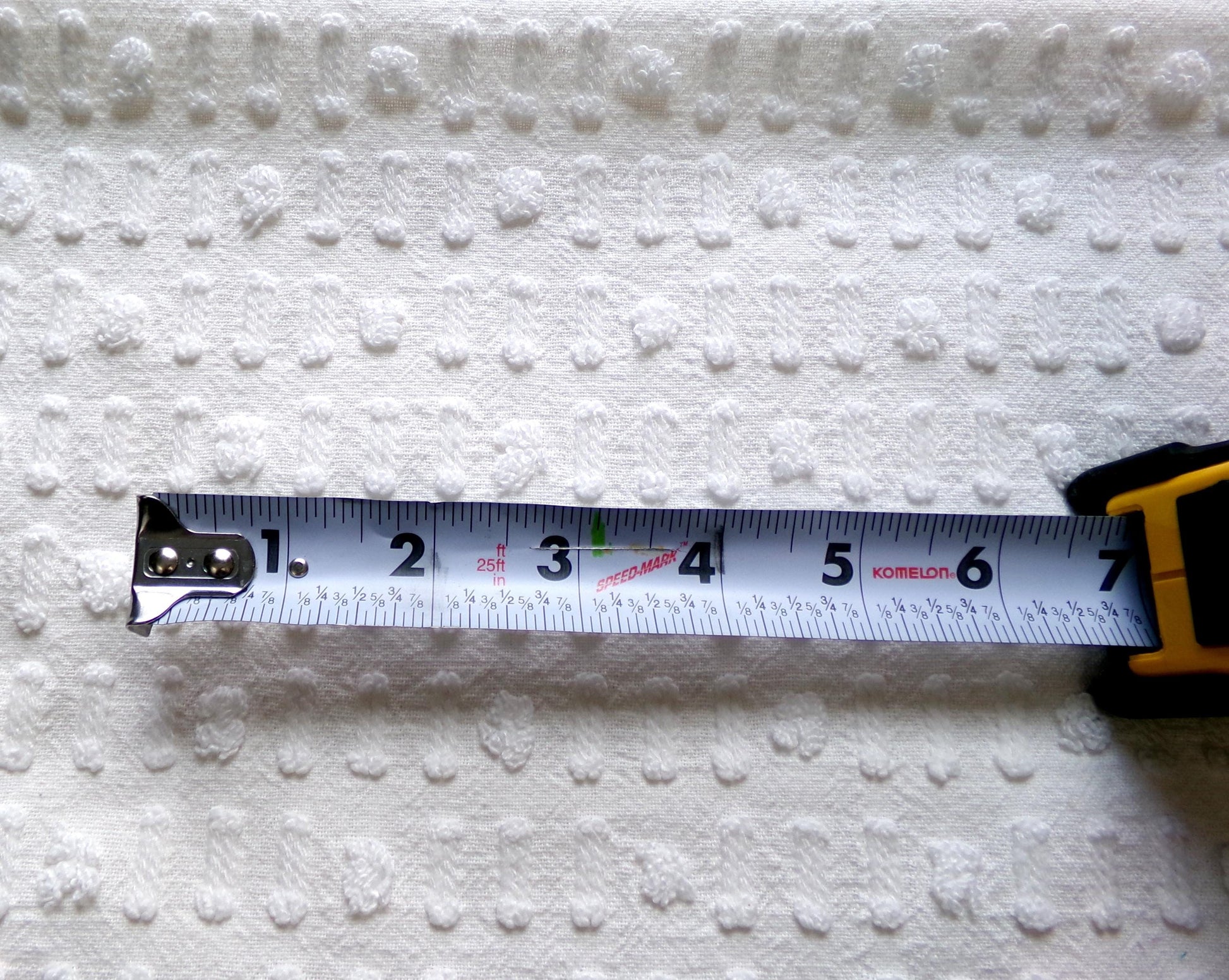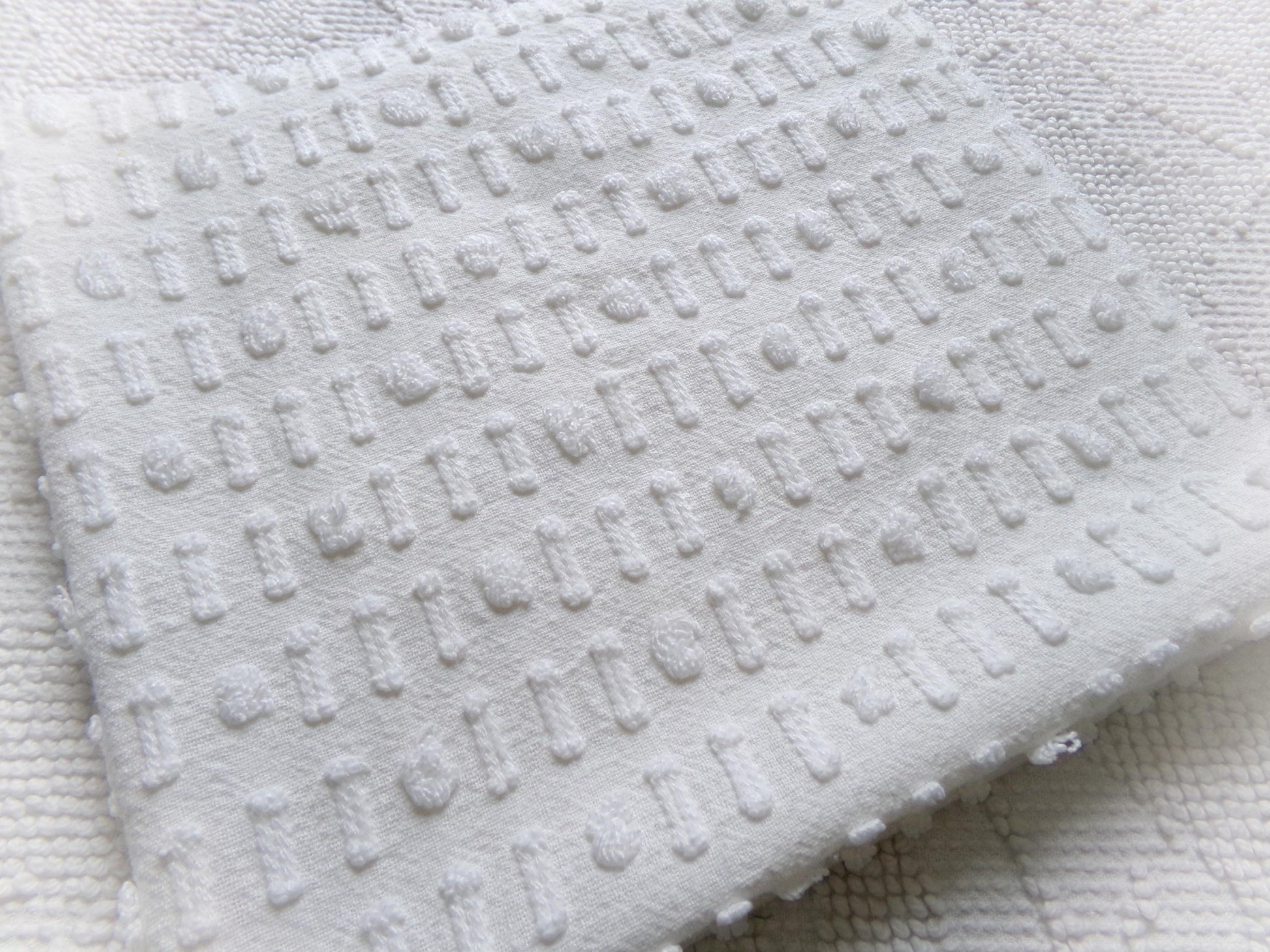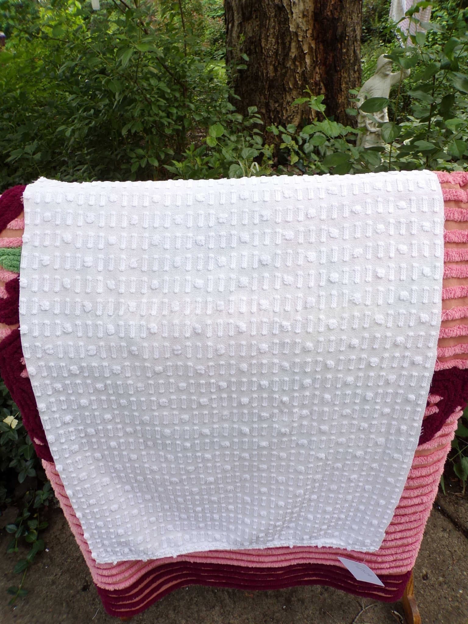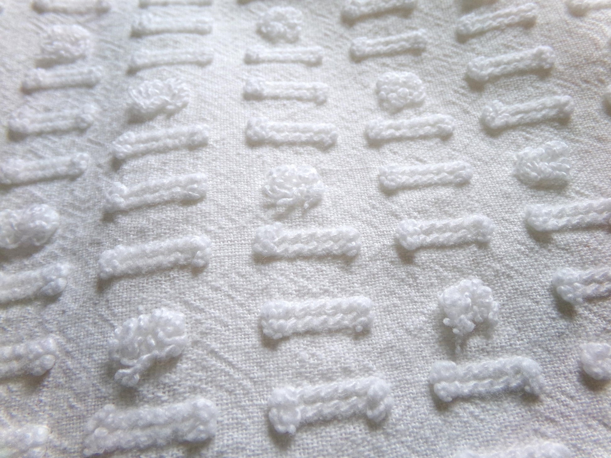 see more, cottagedivine.comA dainty dot-dash design graces this versatile piece of vintage chenille fabric. This popular design adds nice textural interest to any project without overpowering. Use in quilting, small sewing and craft projects, doll blankets, and more.