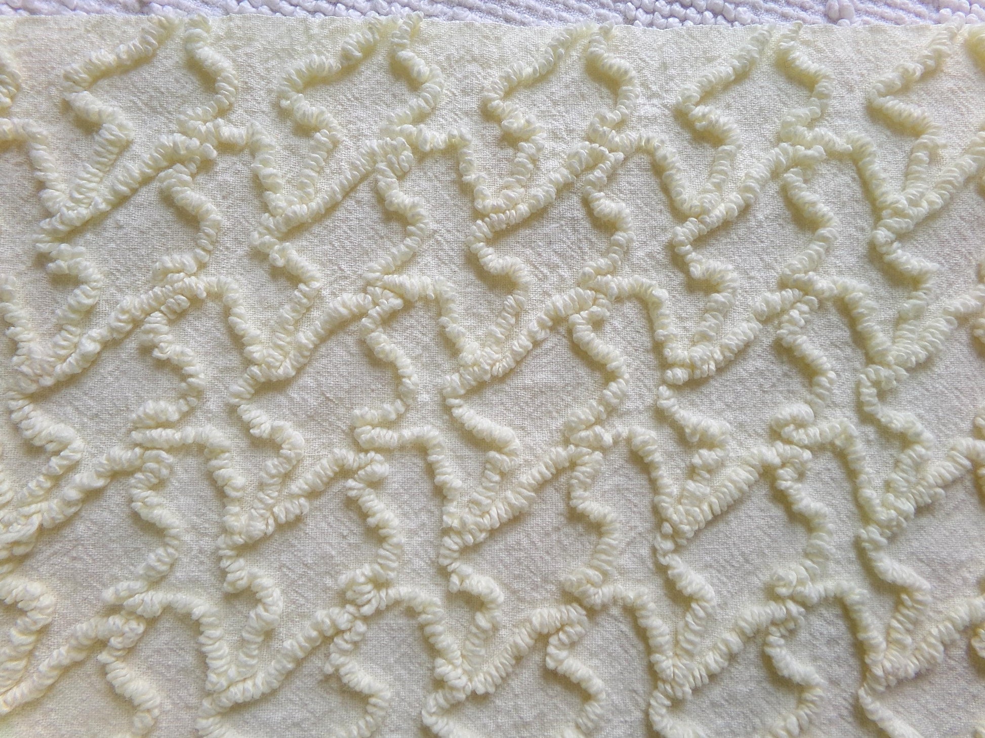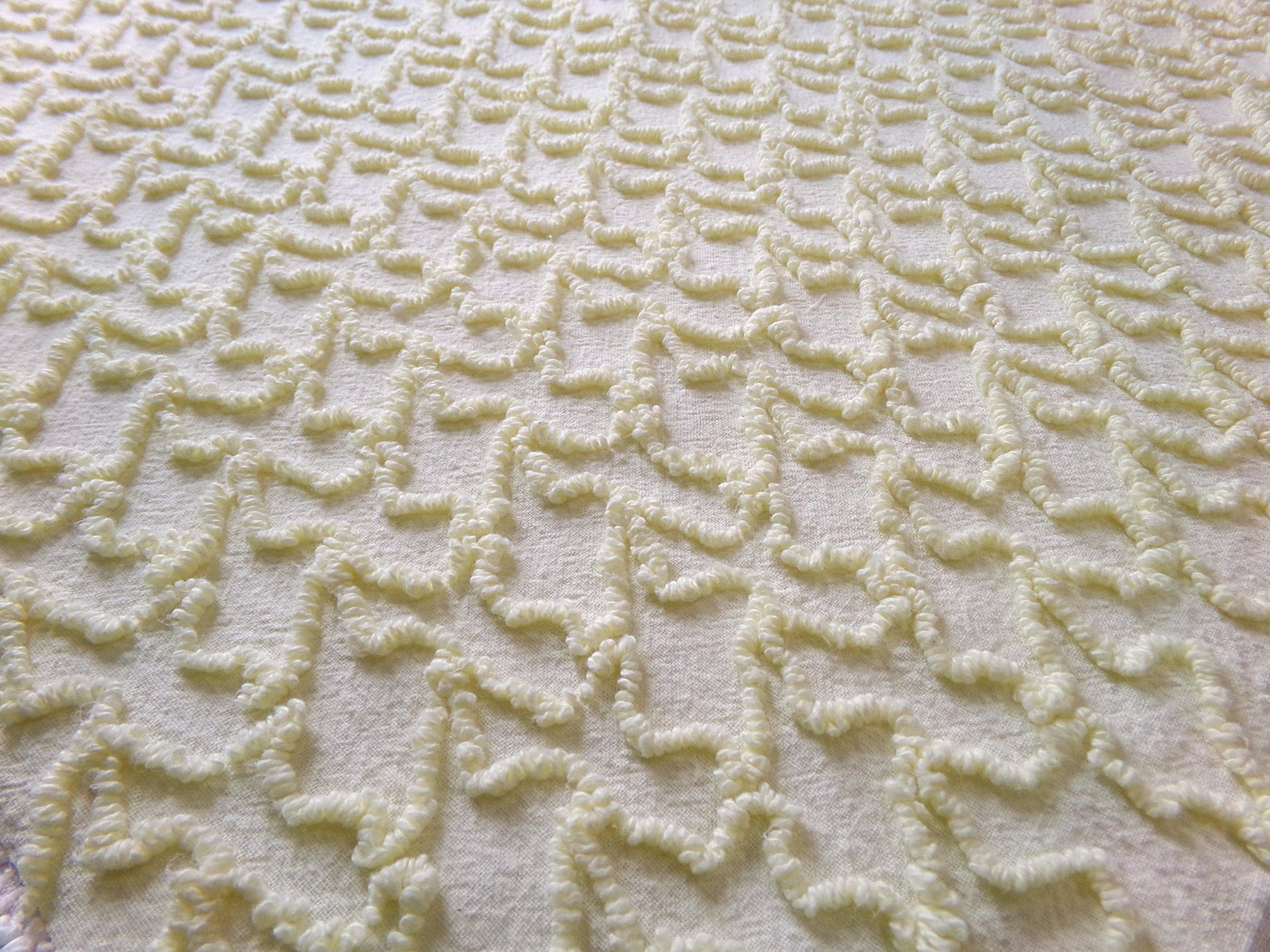 Add a gentle touch of "sunshine" to your project with this buttercup yellow vintage chenille fabric in a very popular needletuft squiggle design. An excellent way to add visual and tactile appeal to handmade quilts and other sewing projects.Key highlights: