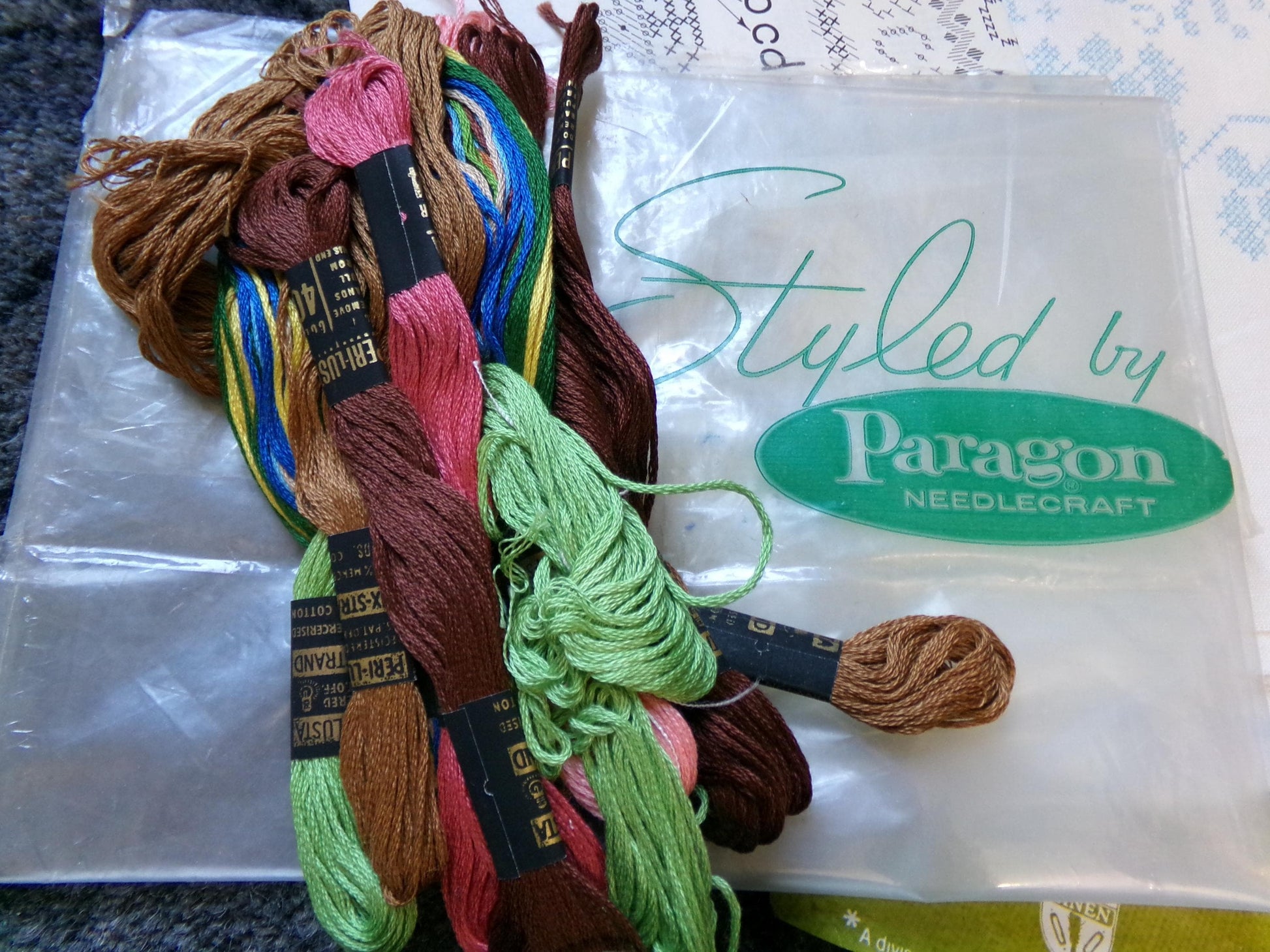 Original pkg insert and instructions show age attributes such as wrinkling and folds. Linen has been pressed but never started or worked in any way.
