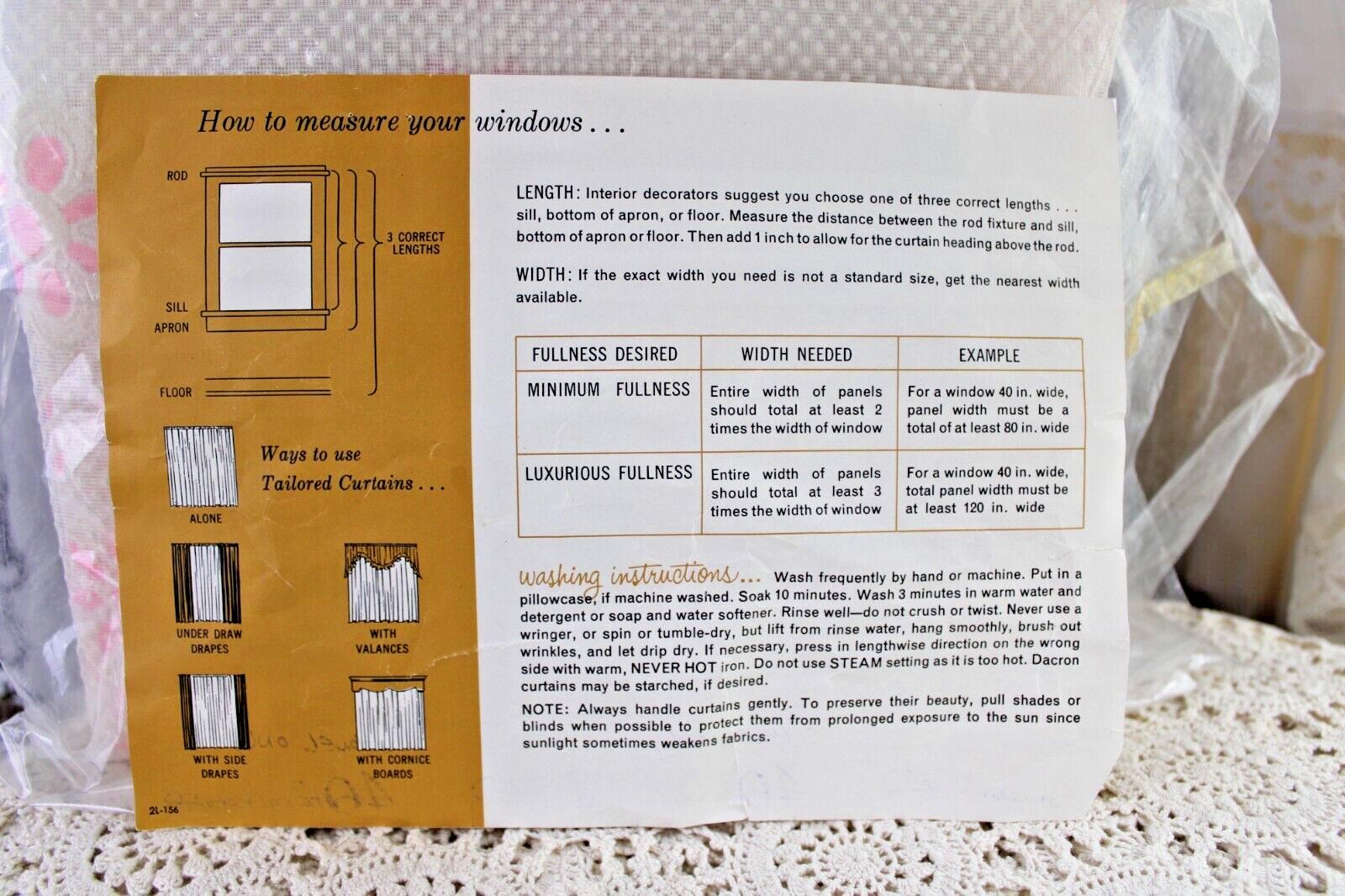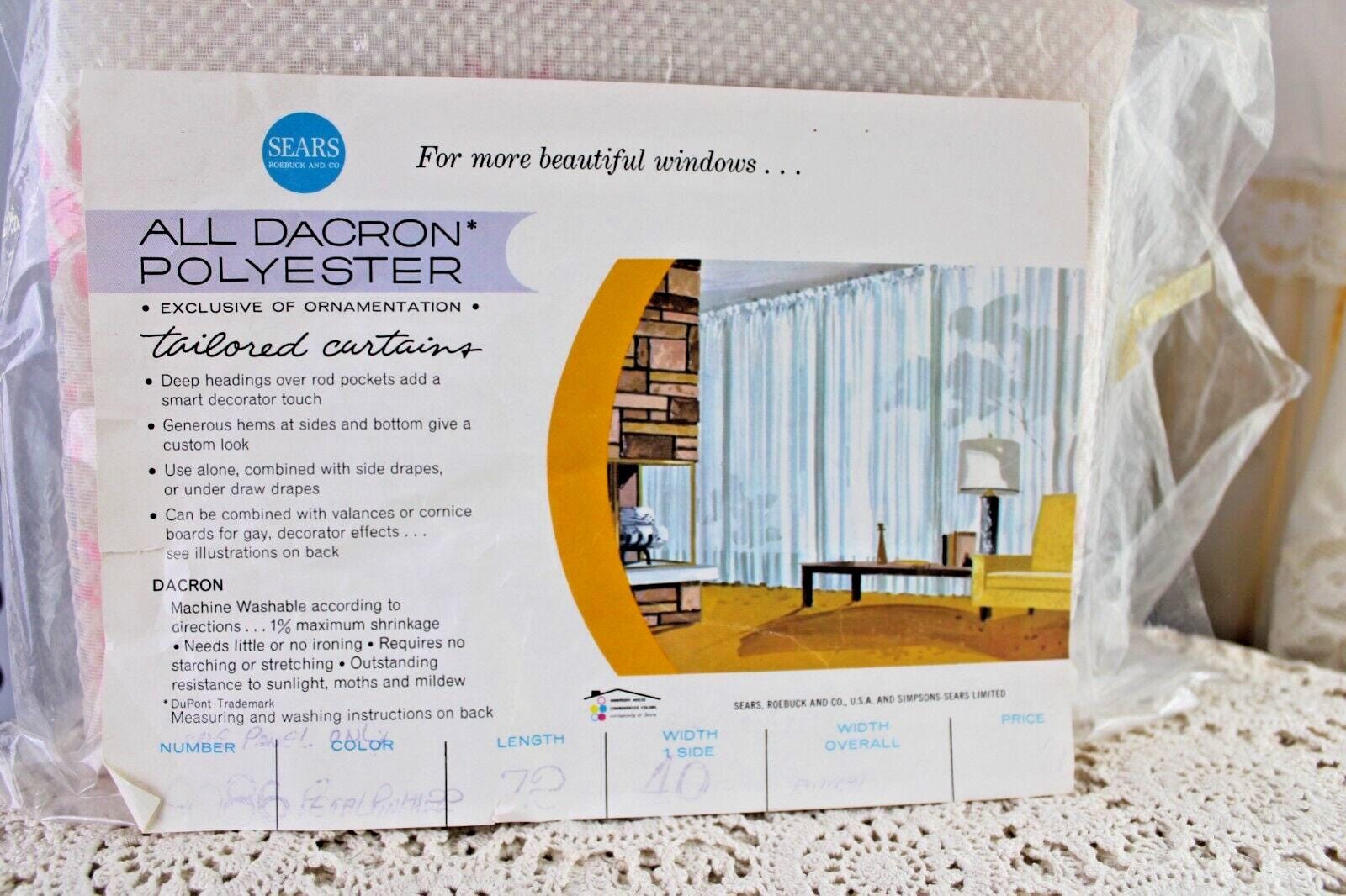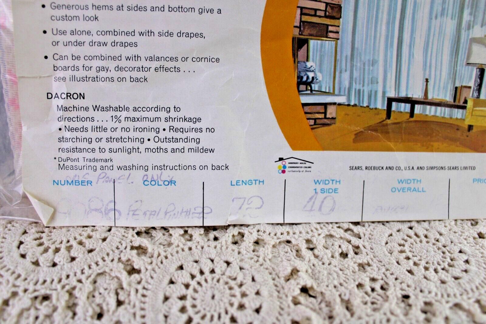 Cottagecore vintage sheer SINGLE curtain panel (not a pair), featuring precious single & double daisy flowers, tied with little bows. Tiny dots scattered across the sheer panel add a touch of whimsy. In cottage classic white & petal pinkNOS, likely from the 1960s era. Package opened but curtain panel appears unused. Measures 72"L x 40"W according to pkg. Additional panels available - choose qty at checkout- in pre-loved vintage condition, always expect attributes of age such as storage scents, small marks, etc.- combined shipping available; overages over $1 refunded