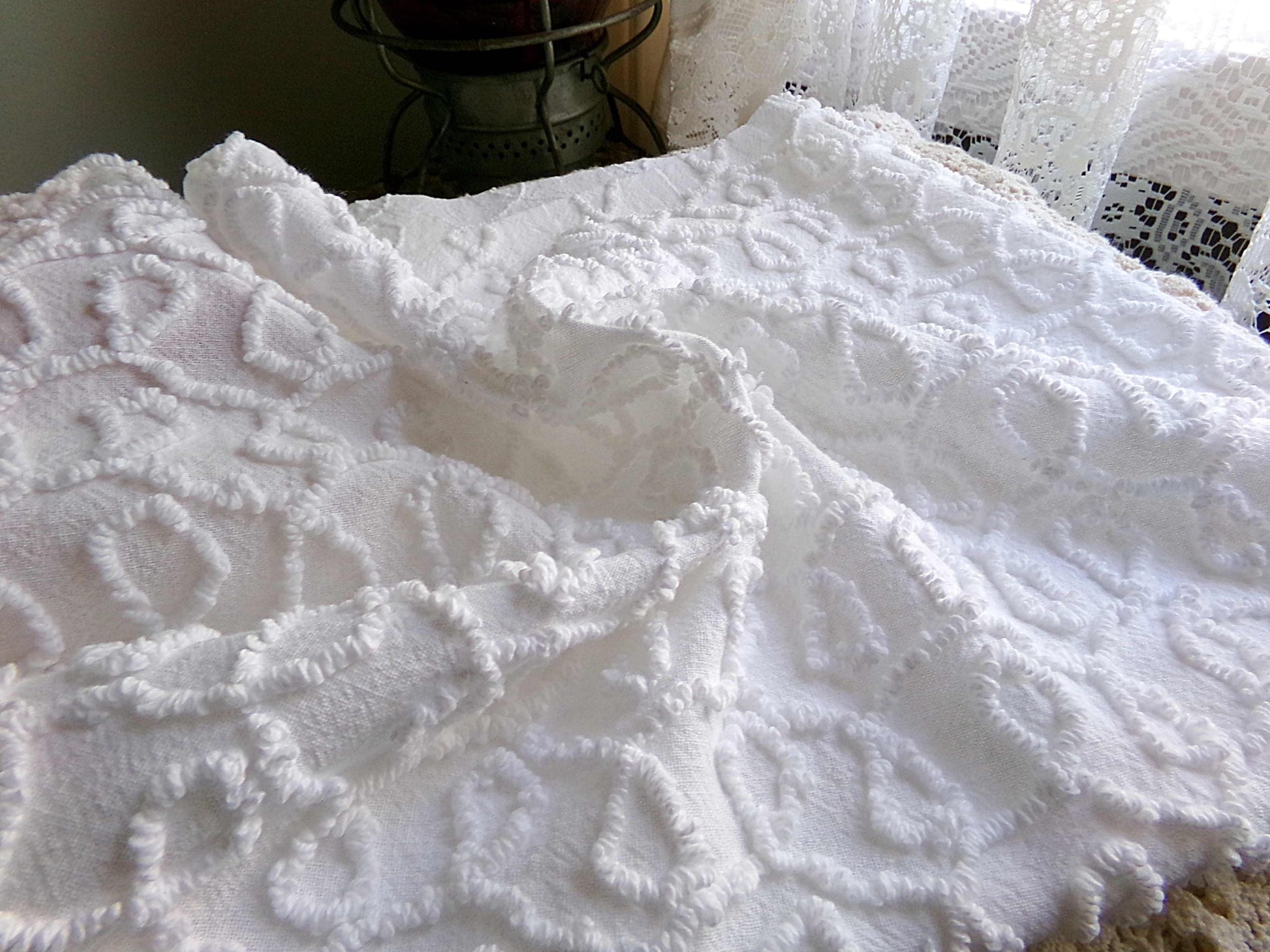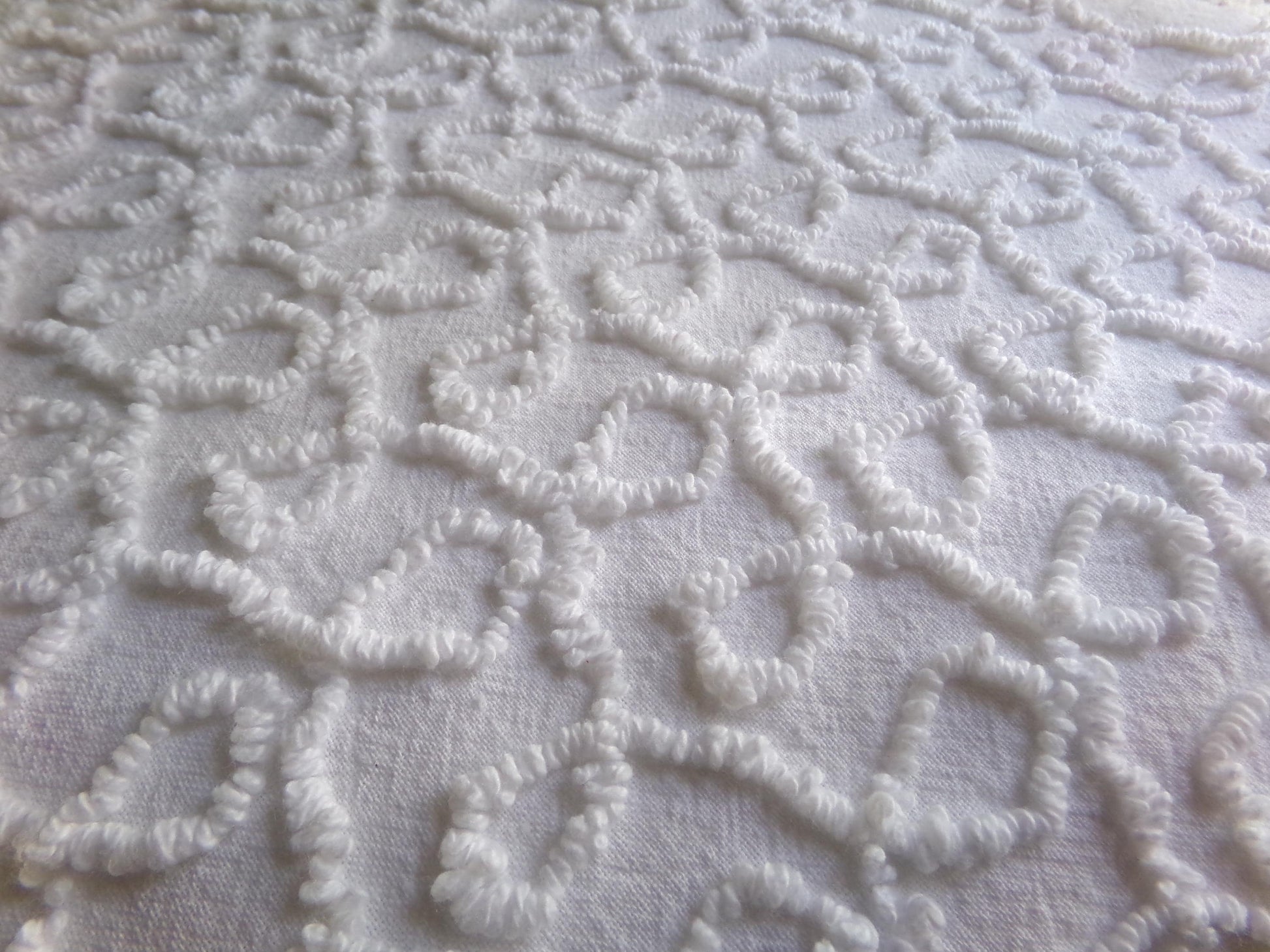 Need a neutral fabric piece with some unique textural interest? This vintage chenille material features a popular loop design that looks like cursive scrolls. It's a more unusual needle tufted pattern by long-gone chenille maker, Cabin Crafts.100% lightweight cotton. Measures approx 19" x 27" inches.